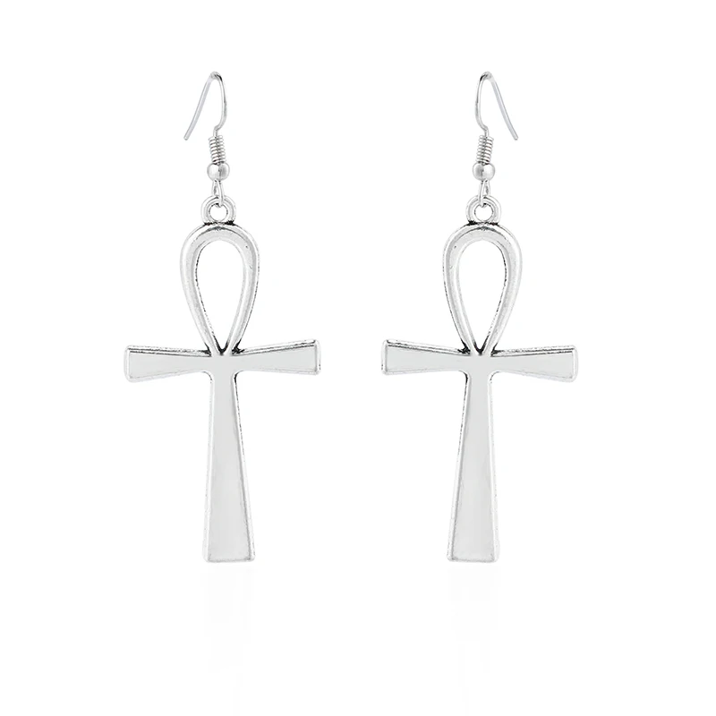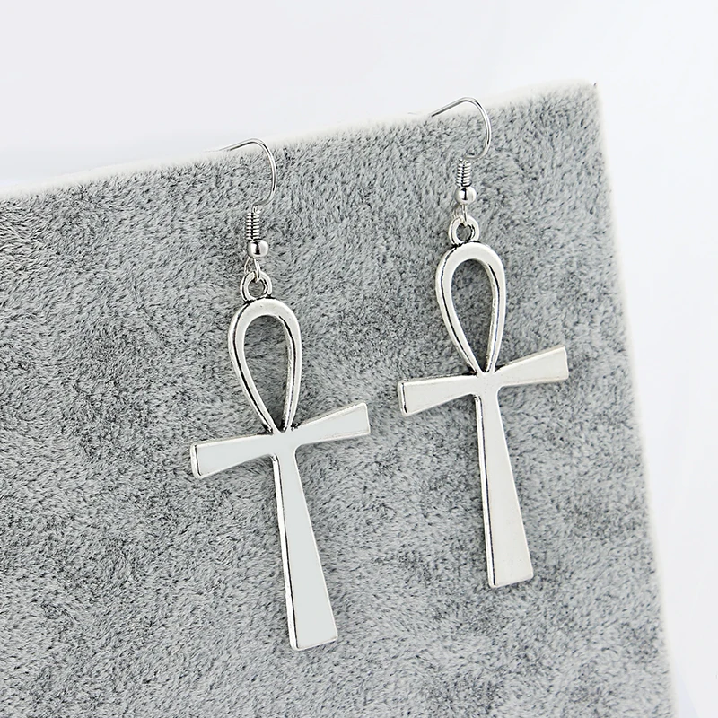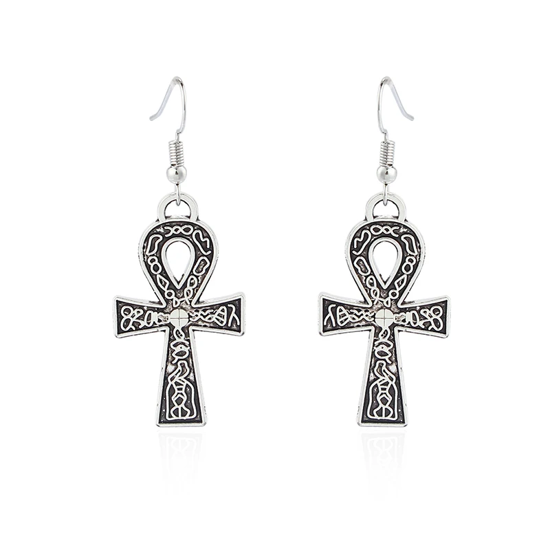 Best 1 Pair Antique Silver/Brown Egyptian Ankh Cross Pendant Earring Egypt Cross Charms DIY Luckly Earri