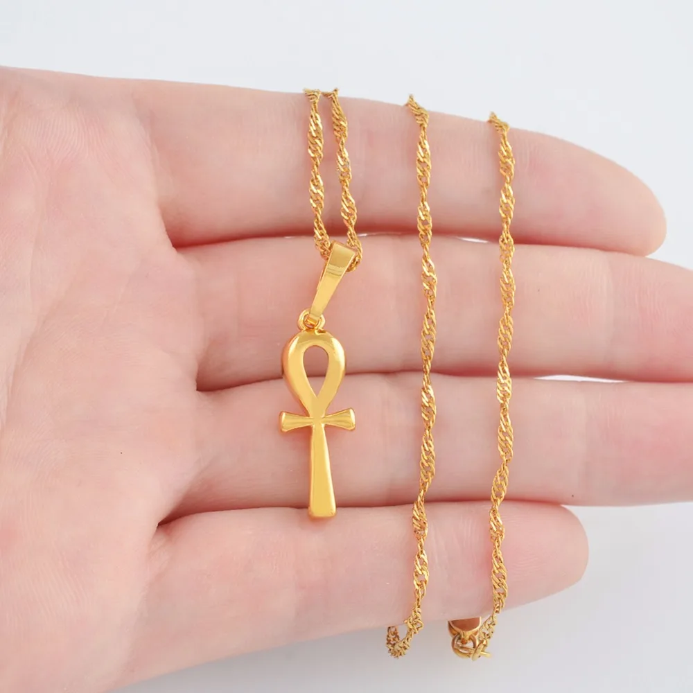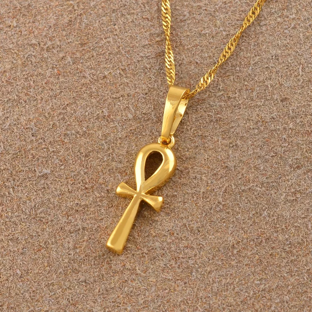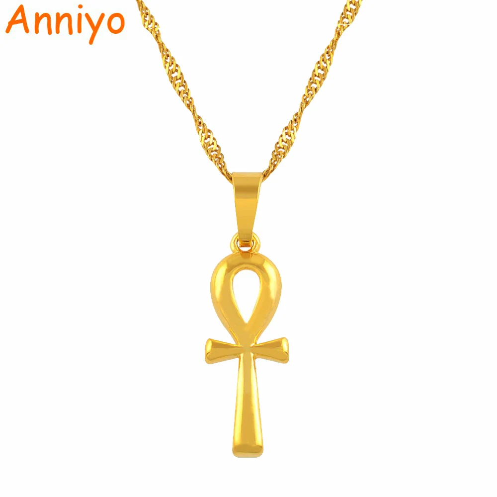 Best Anniyo Egyptian Ankh Cross Pendant Necklace Woman Girls Gold/Silver African Charms Jewelry Egypt Hi