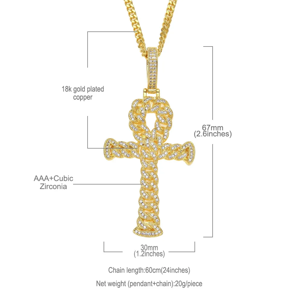 Promo Hip Hop AAA CZ Zircon Paved Bling Iced Out Symbol of vitality Egypt Ankh Cross Pendants Necklace fo