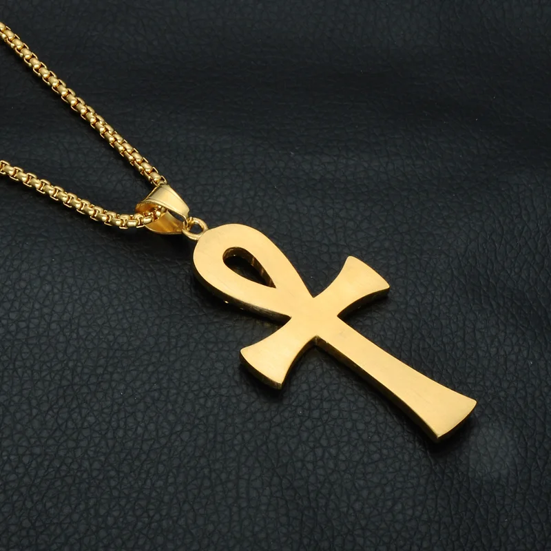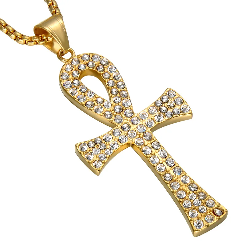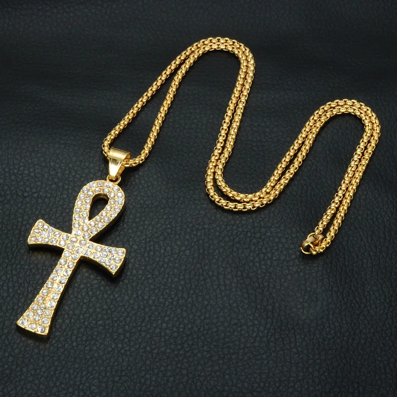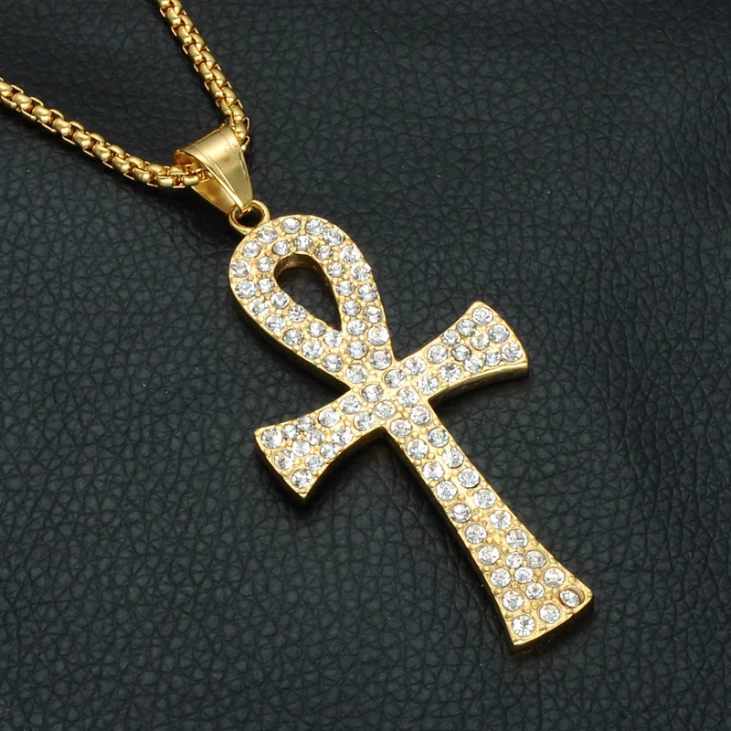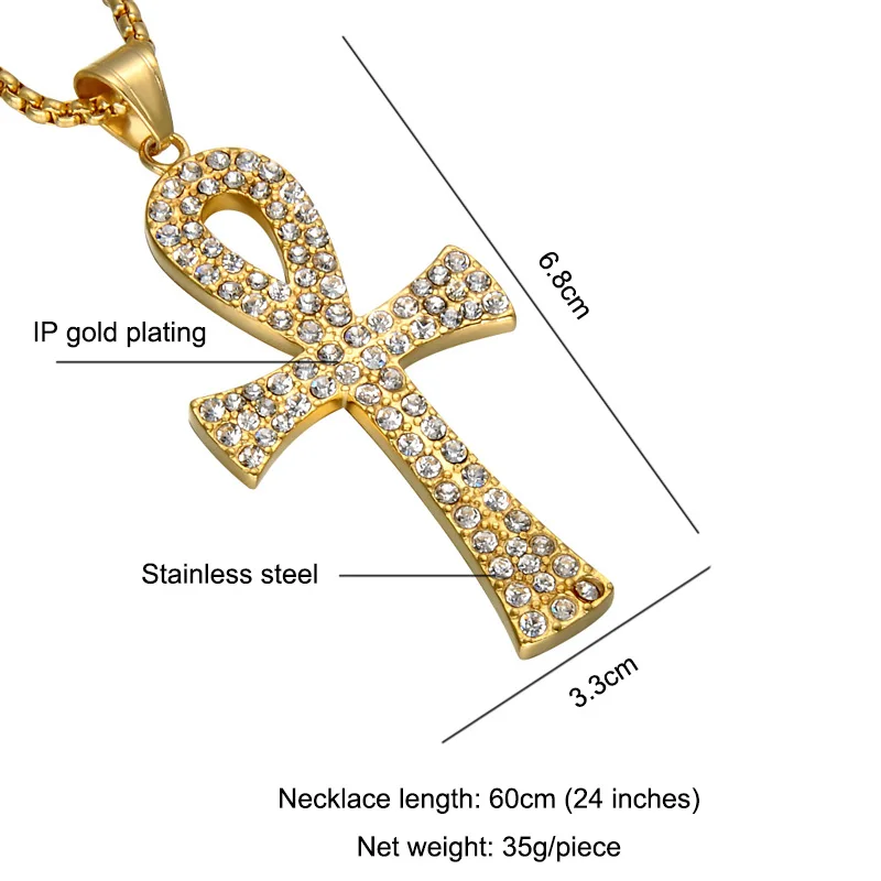 Best Hip Hop Men Gold Egyptian Ankh Cross Pendant Necklace Egypt Hieroglyphs Stainless Steel Titanium Ne