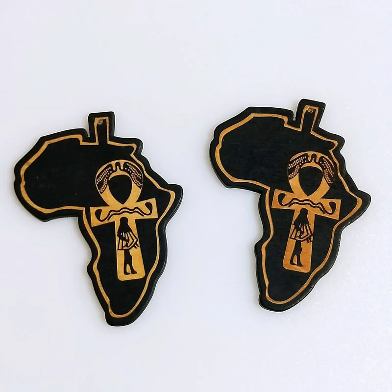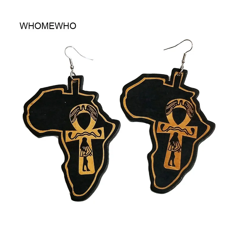 Best Natural Wood Laser Cut Engraved Eye of Horus Nefertiti Egypt Africa Map Ankh Earrings Bohemia Afric