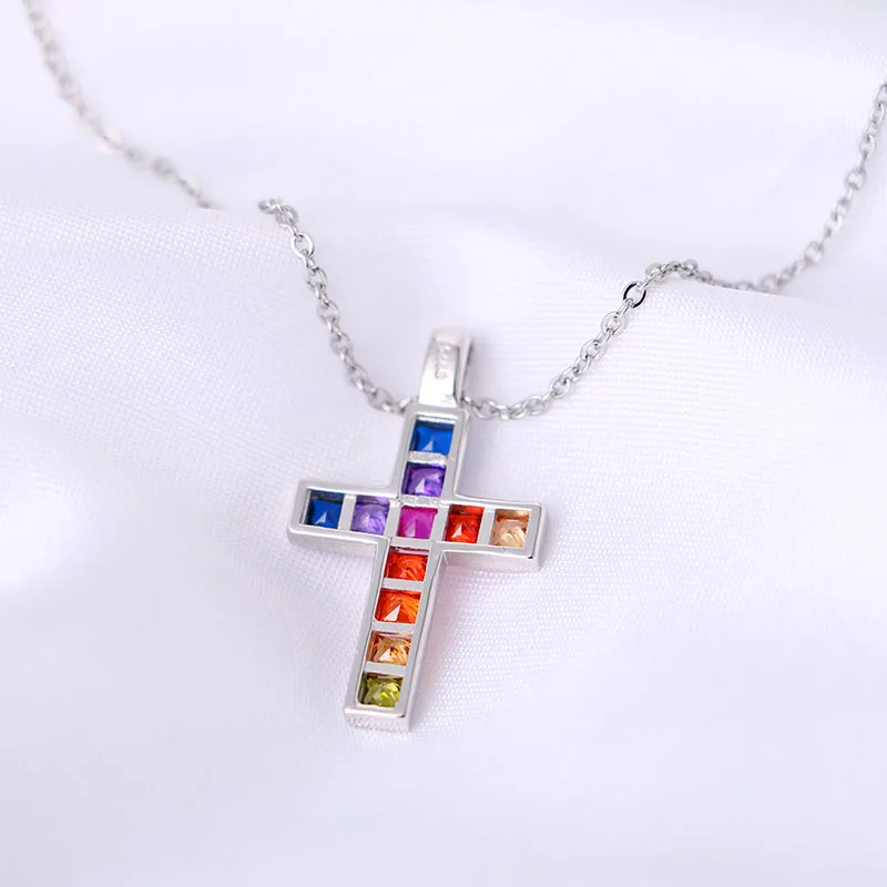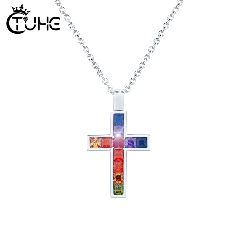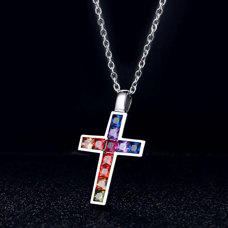 Buy Rainbow Iced Zircon Ankh Cross Necklace S925 Silver Material Bling CZ Key To Life Egypt Cross Neckl