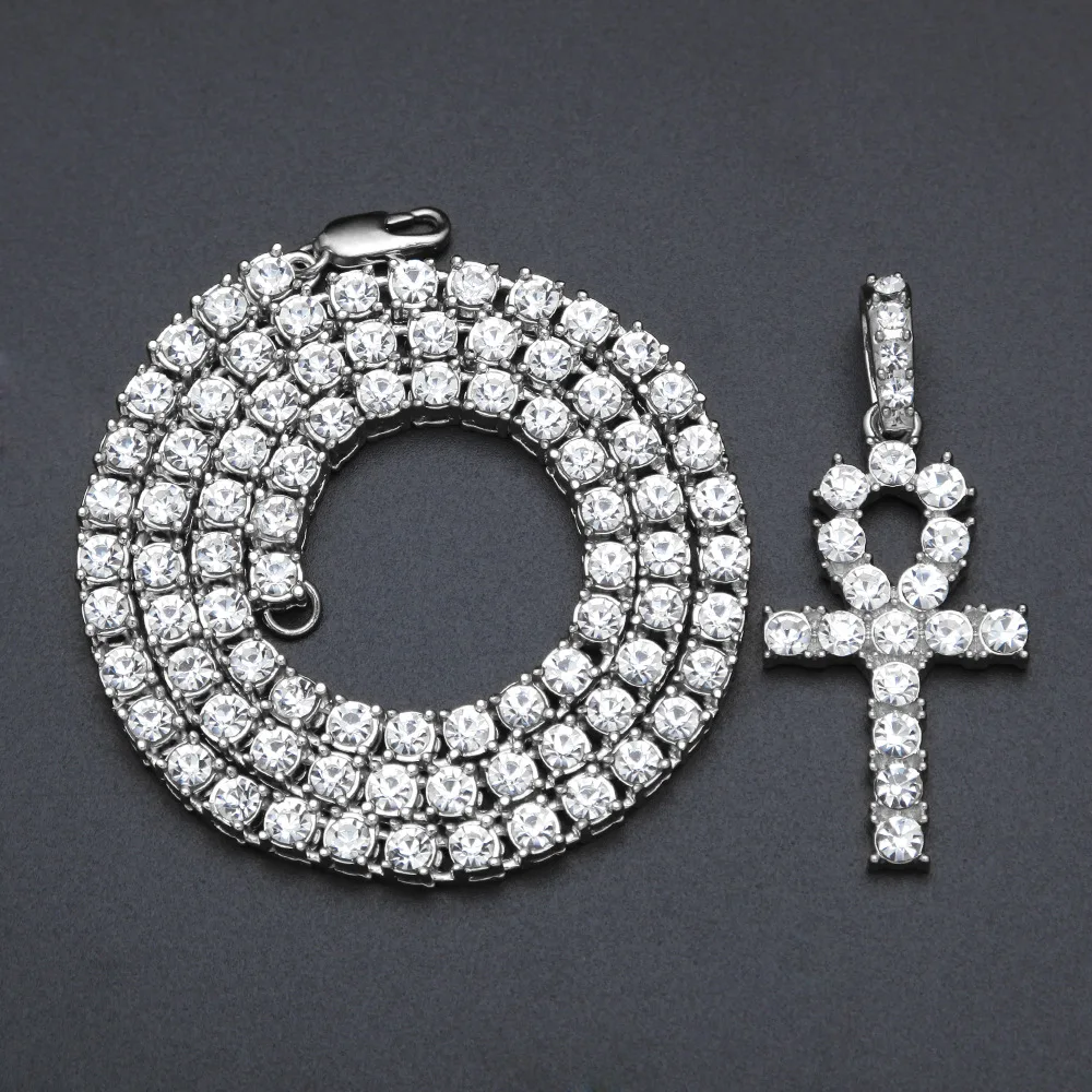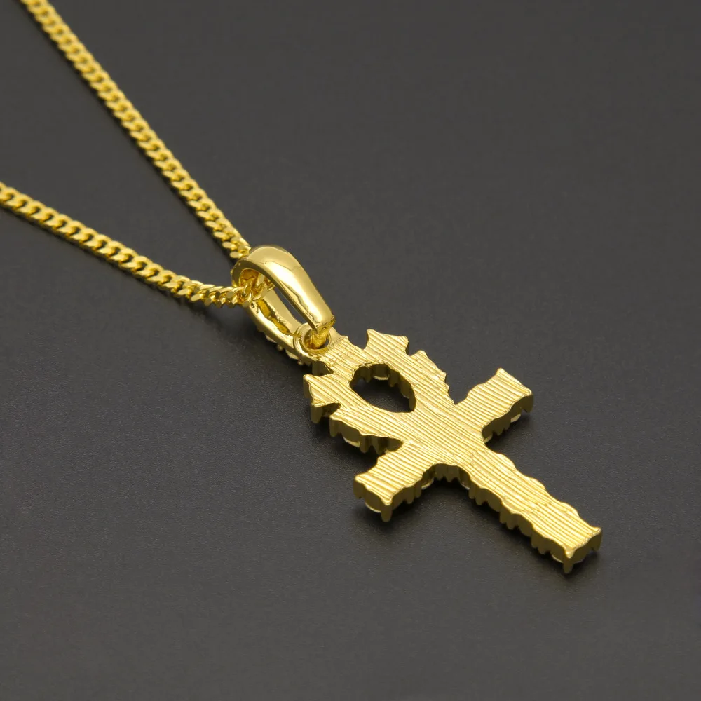 Best Vintage Gold Ankh Egyptian Pendants Men Women Stones Hip Hop Chains bling Keys To Life Egypt Cross