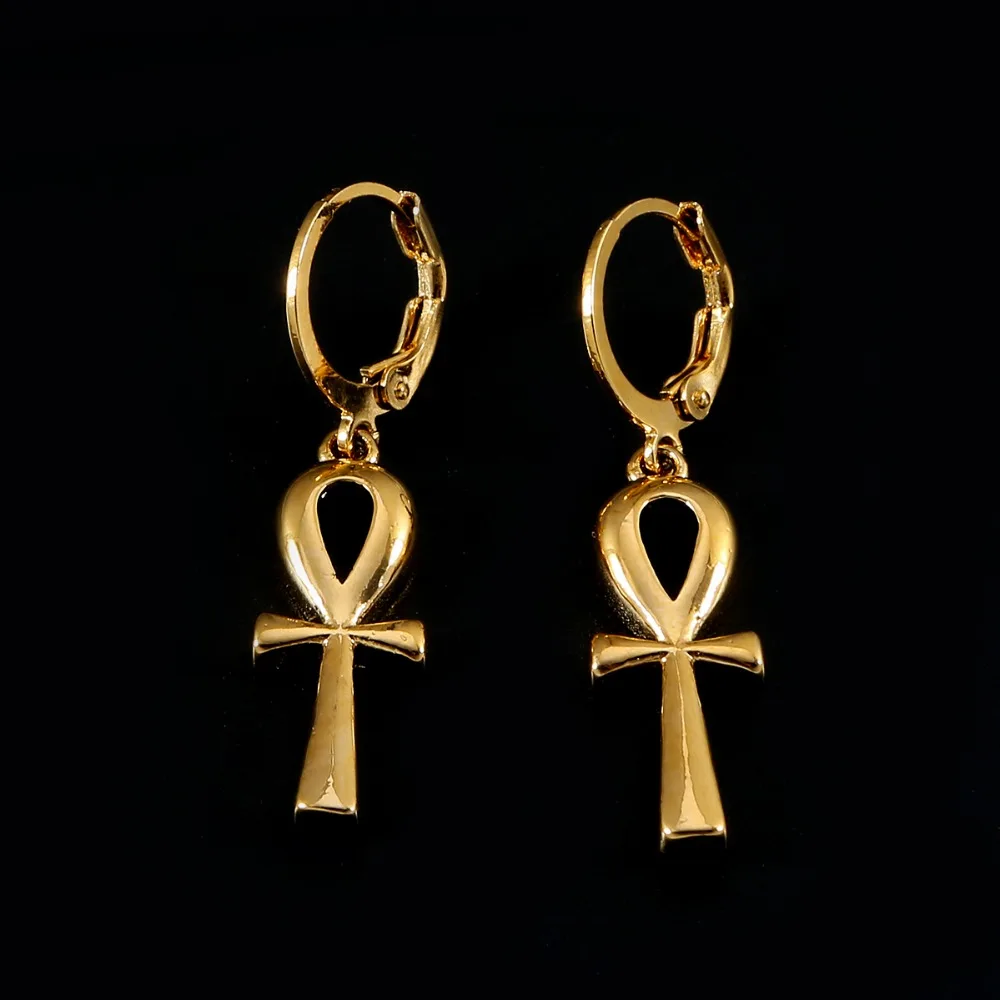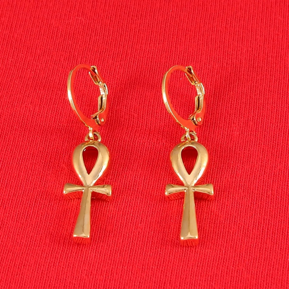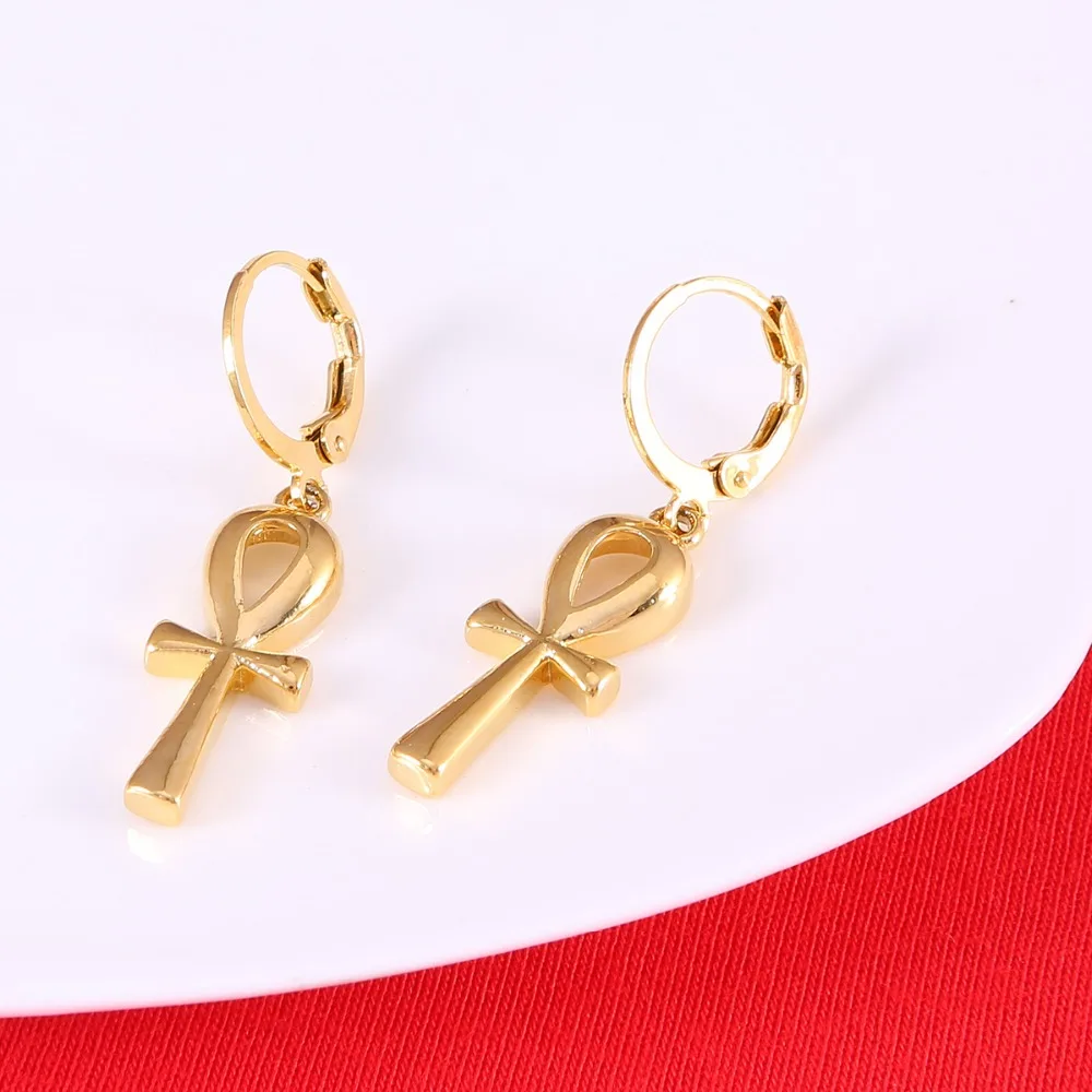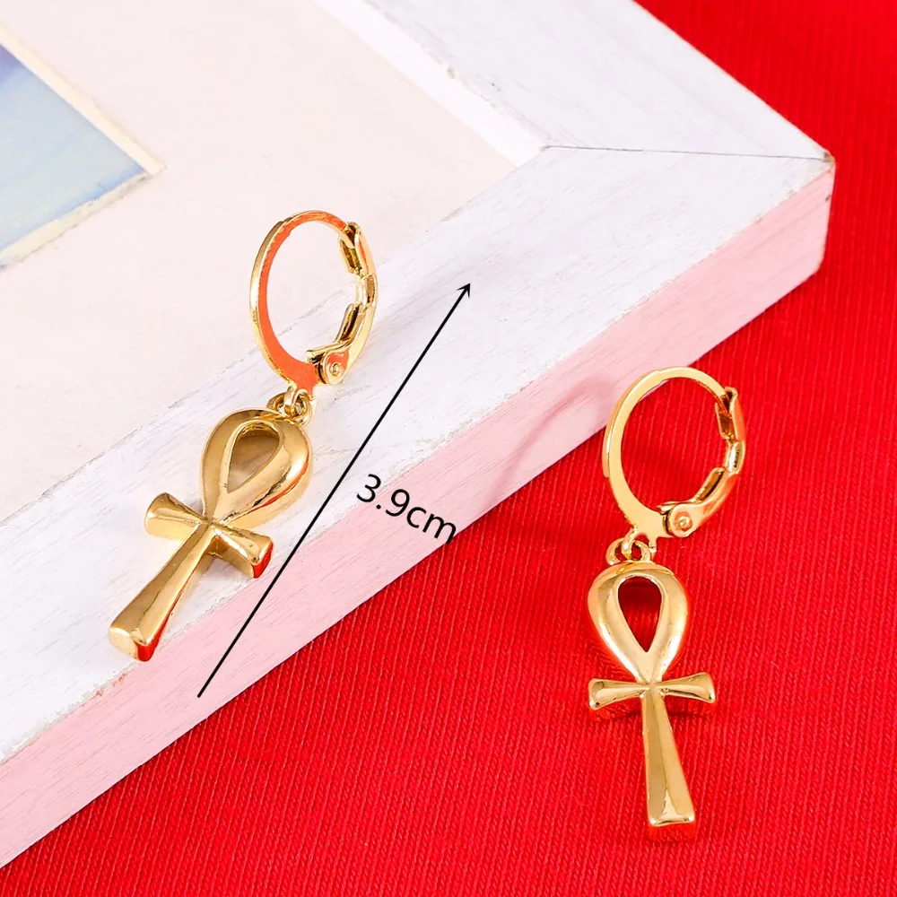 Best Classic Ankh Earrings Gold Color Egyptian Cross Jewelry Women Egypt Hieroglyphs Crux Ansata Earring