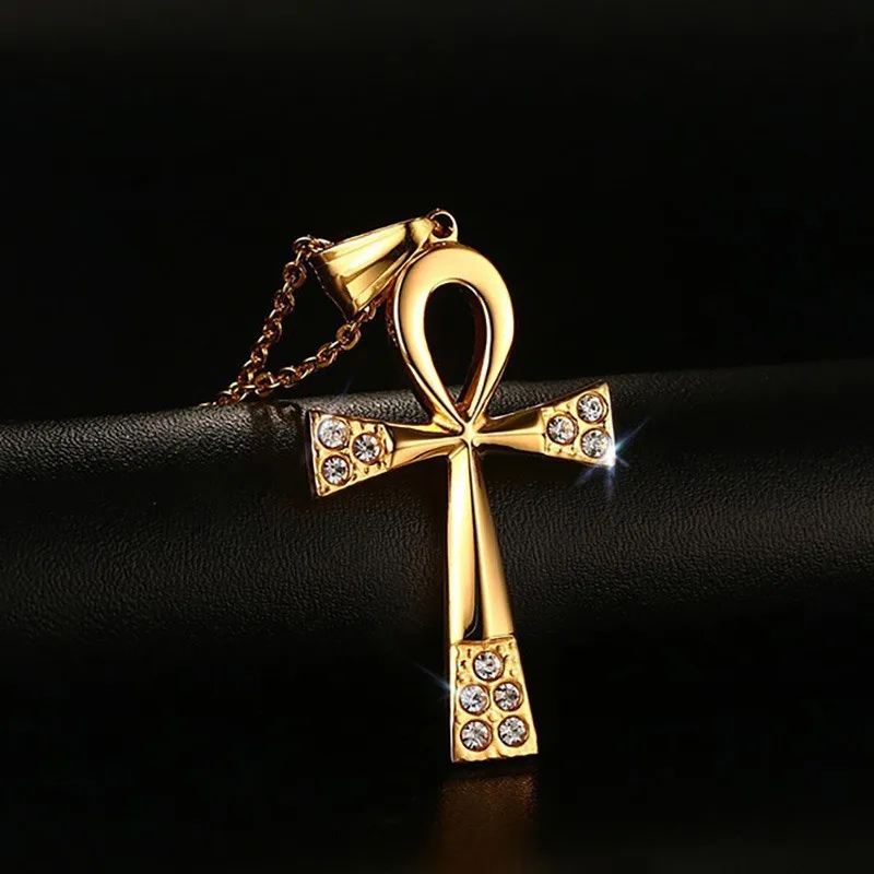 New Crystal Key To Life Egypt Cross Necklaces Women Men Stainless Steel Prayer Ankh Pendant Jewelry 20/