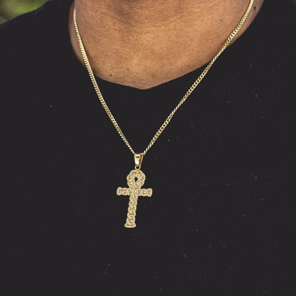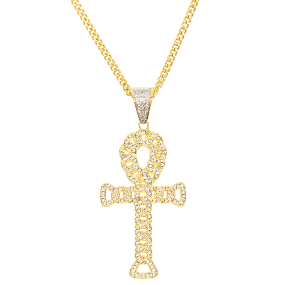 Buy Egypt mysterious symbol Ankh cross Pendant Necklace cuban link chain shape paved full iced out blin