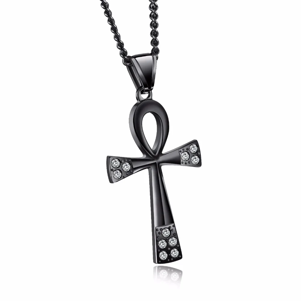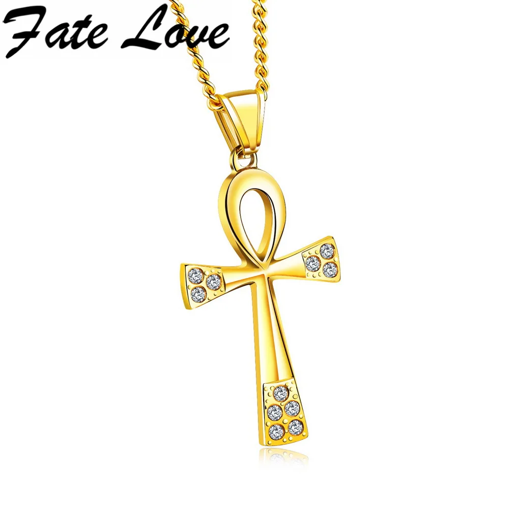 Best Fate Love Ankh Cross Pendant Gold Color Stainless Steel Pendant & Chain For Men Egypt Hieroglyphs Z