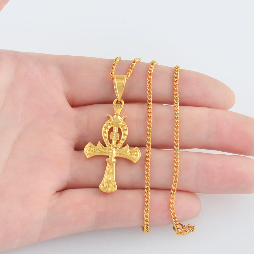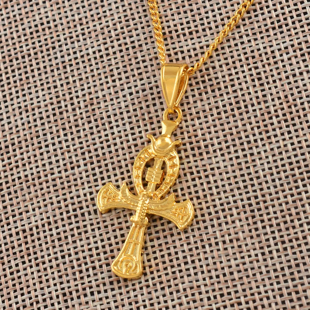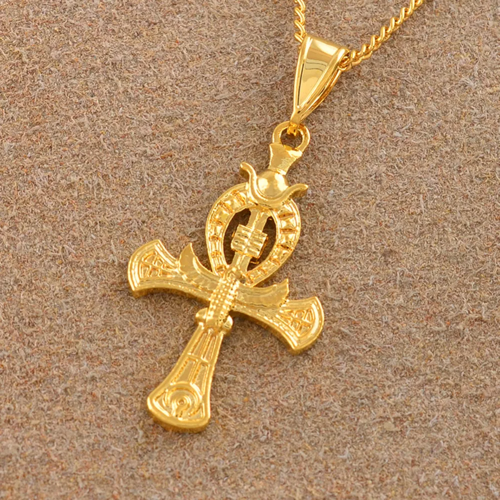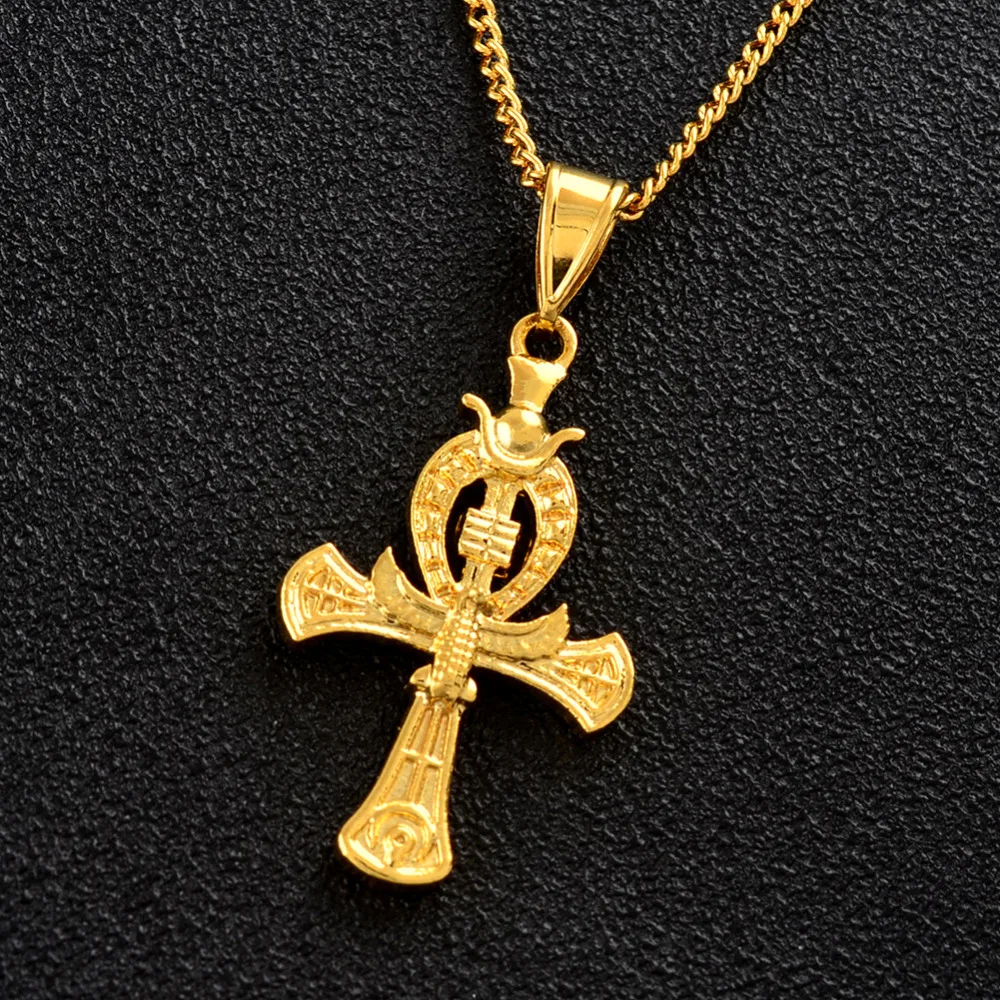 New Gold Color Ankh Cross Ancient Symbol of Egyptian Amulets African Pendant Necklaces Jewelry Egypt Cr