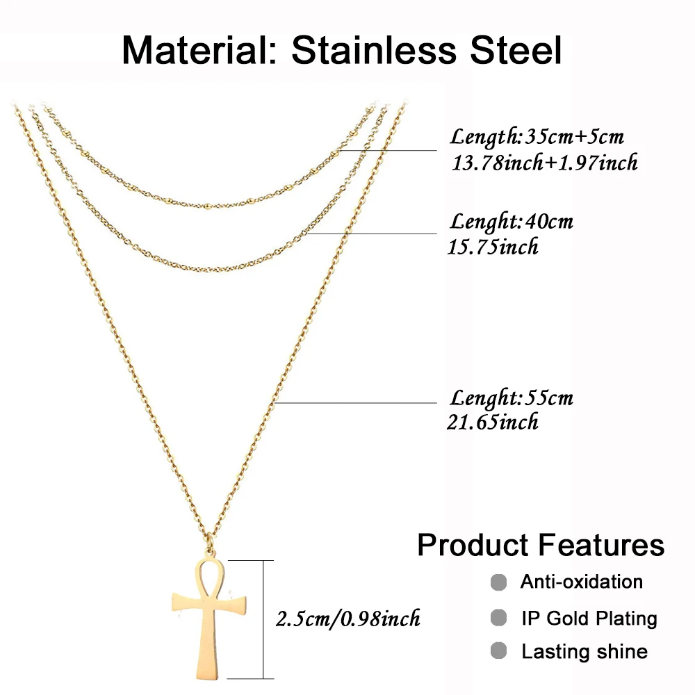Buy Stainless Steel Gold Silver Color Ancient Egypt Cross Ornament Layered Simple Thin Necklace 3 Layer