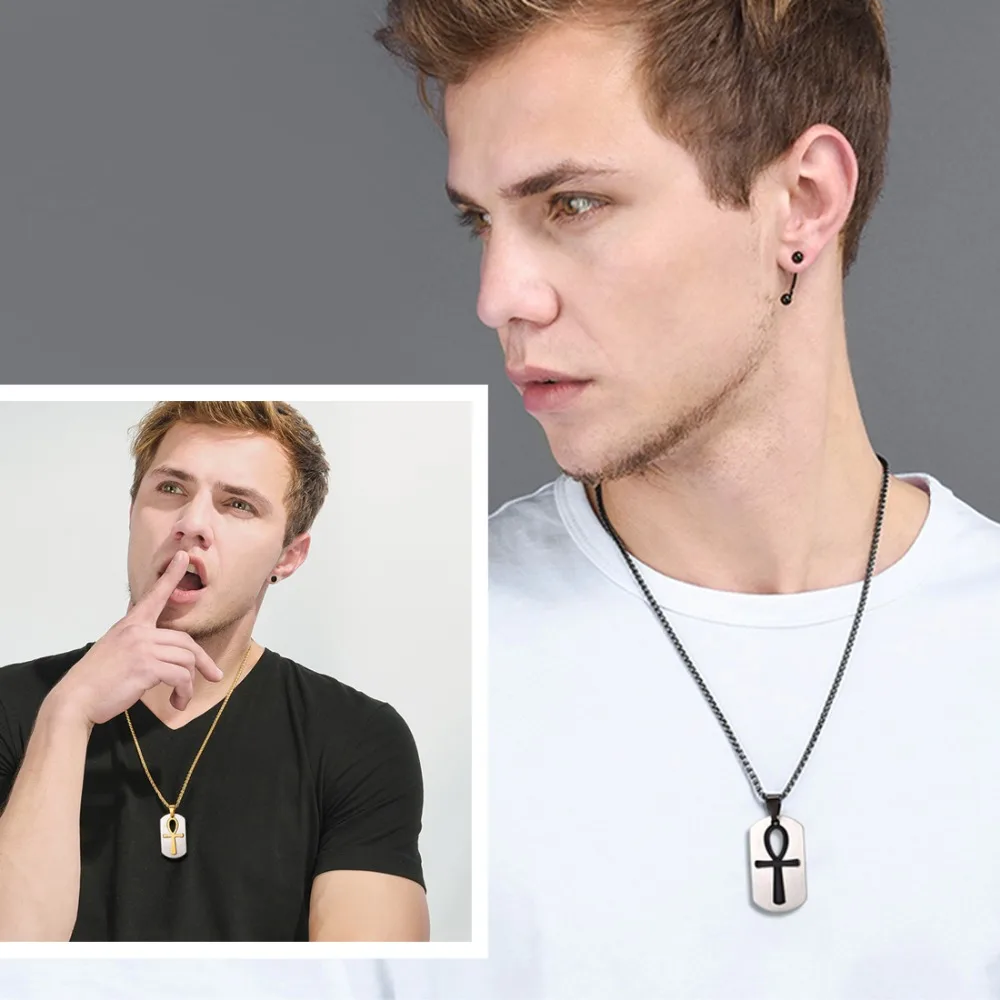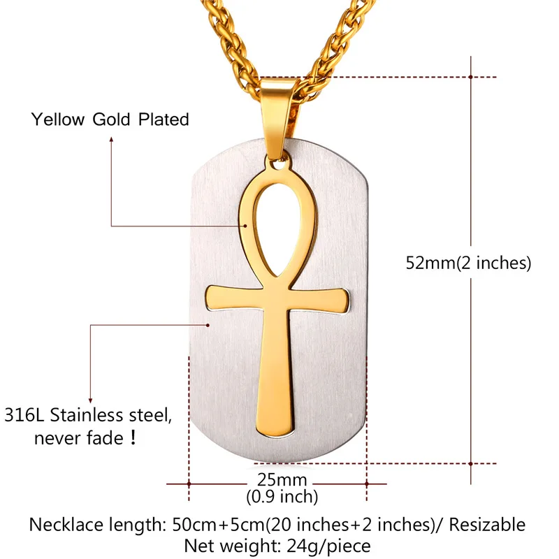 Buy U7 Ankh Key To Life Egypt Cross Pendants & Necklaces Stainless Steel Black/Gold Color Dog Tag Jewel