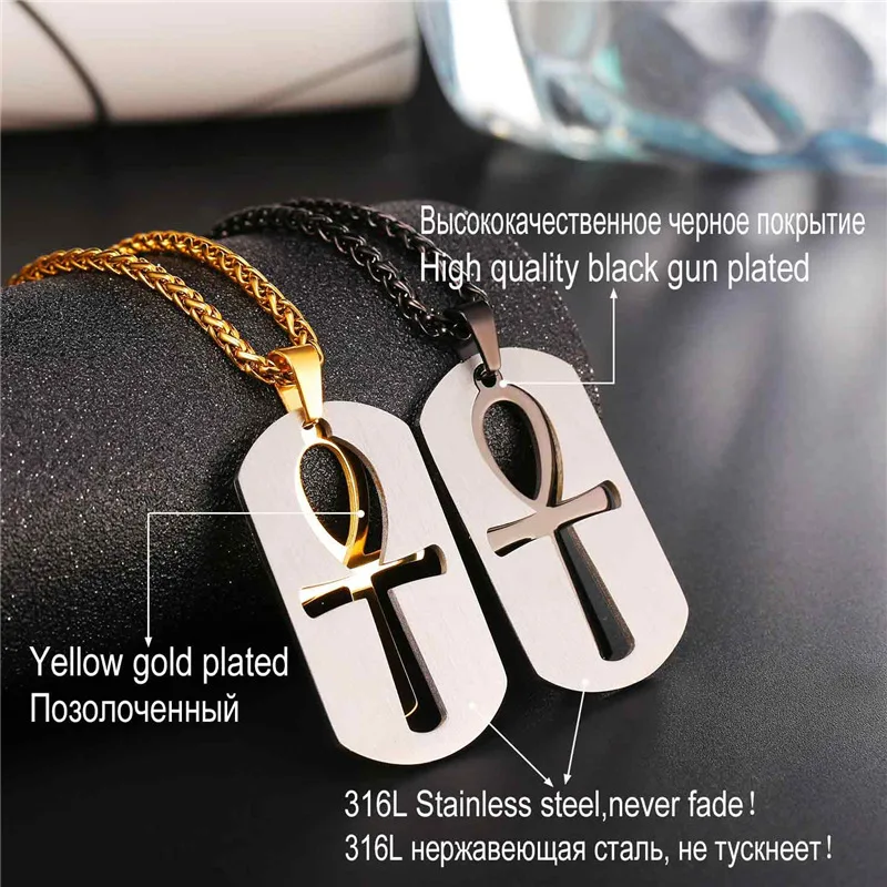 New U7 Ankh Key To Life Egypt Cross Pendants & Necklaces Stainless Steel Black/Gold Color Dog Tag Jewel