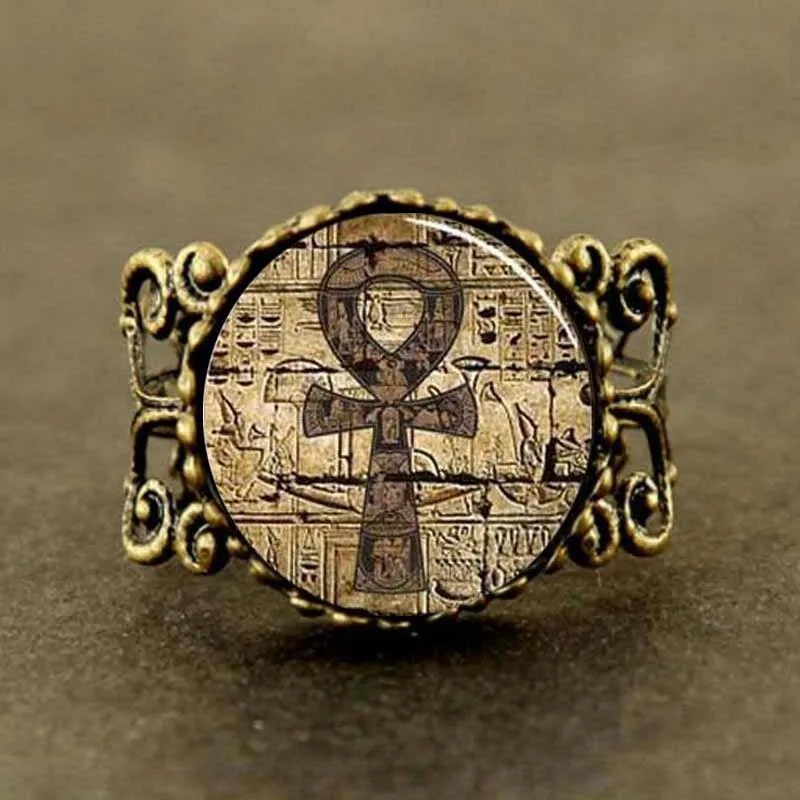New 2017 New Trendy Egyptian Ankh Ring Eternal Life Ring Egypt Jewelry Round Glass Photo Silver
