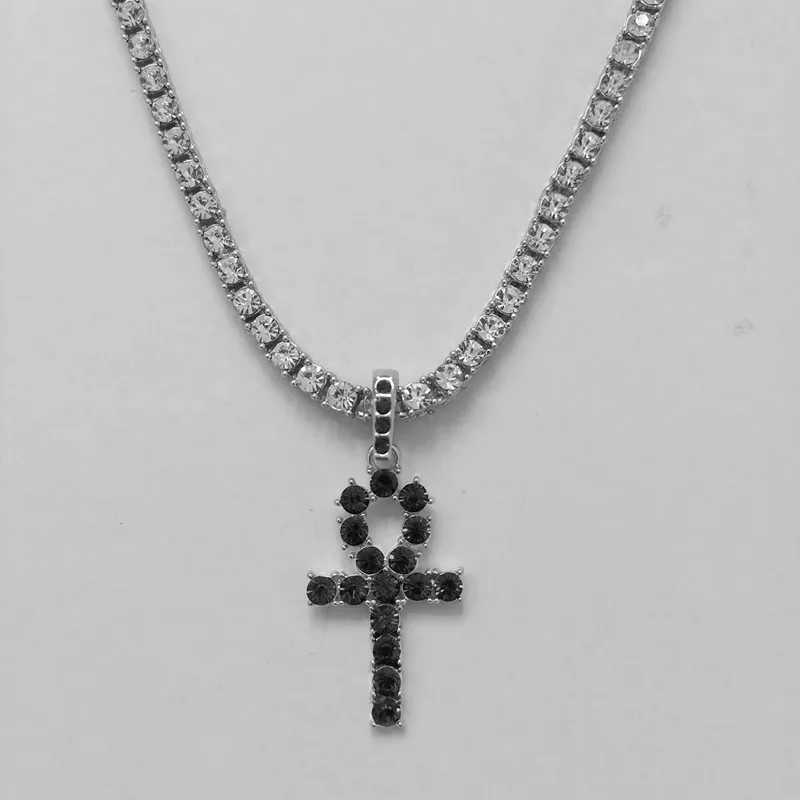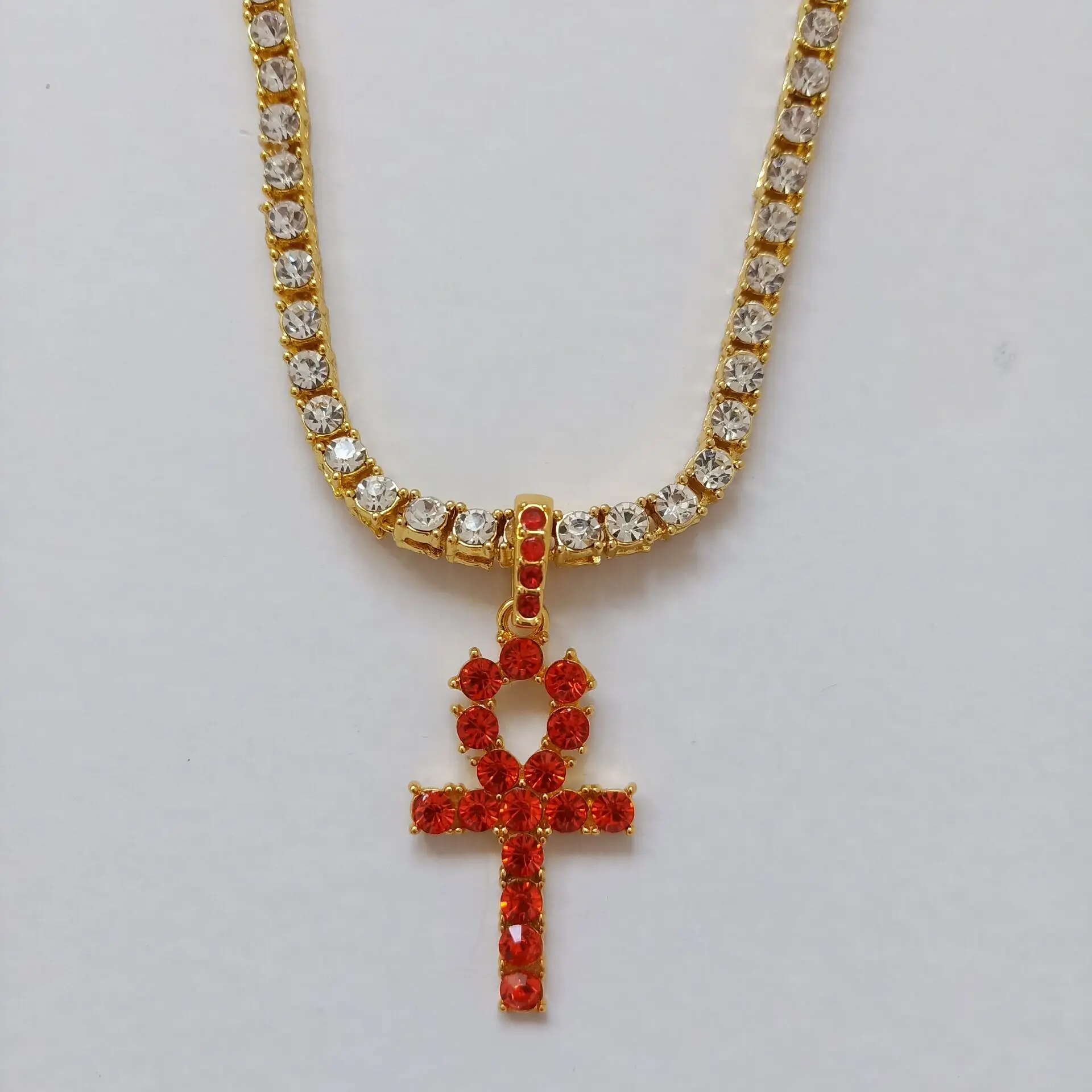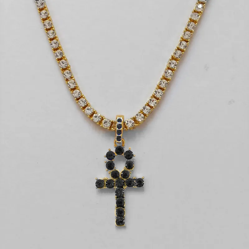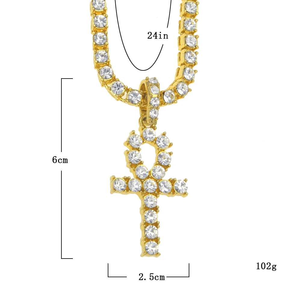 New Ankh Cross Necklace Egyptian Jewelry Gold Color Pendant Tennis Chain Formen Key To Life Egypt Cross