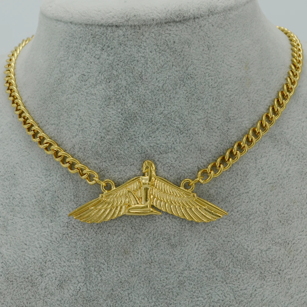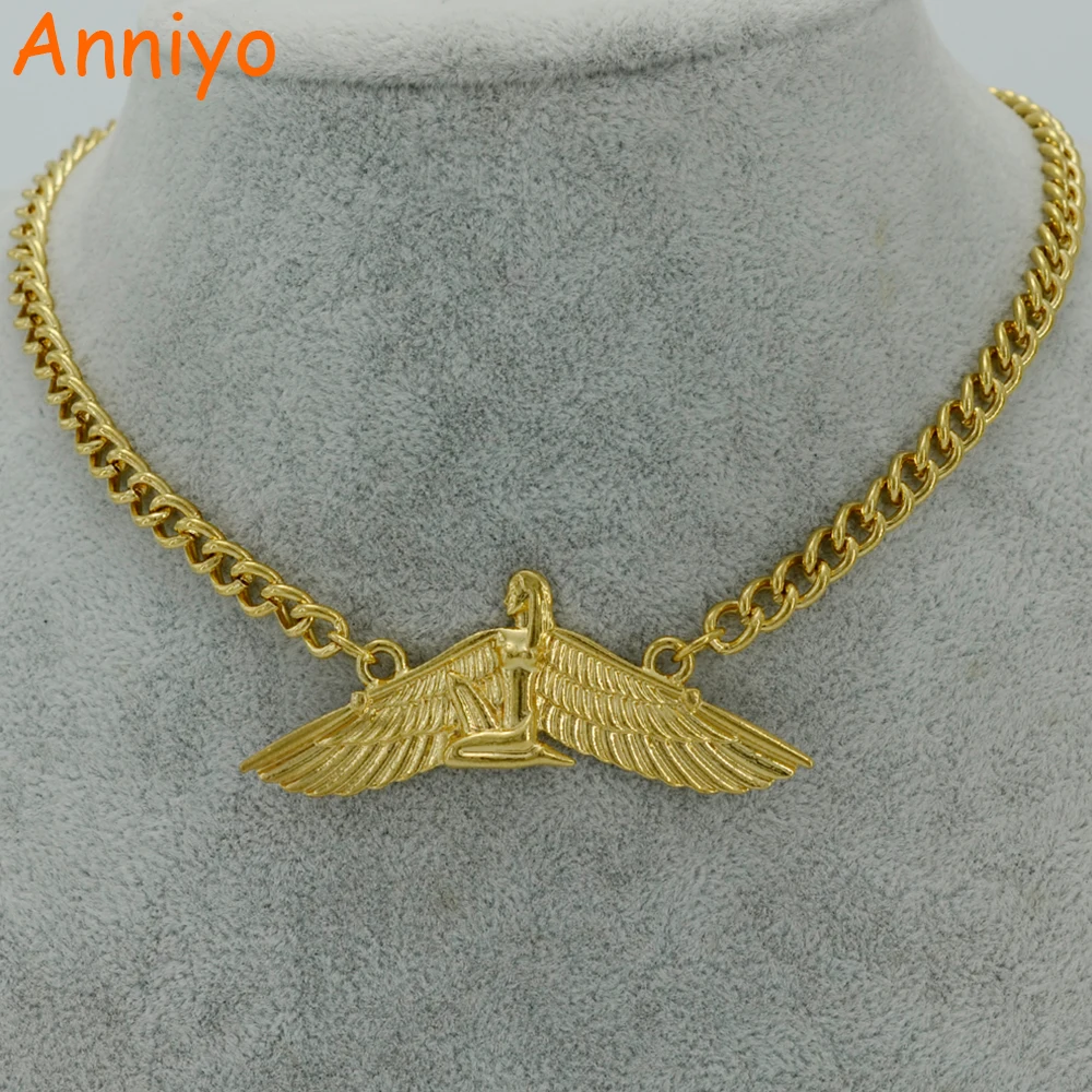 New Anniyo 53cm Fab Egyptian Goddess Necklaces Gold Color Wing Necklace Ankh Bib Wicca Pagan Jewelry Eg