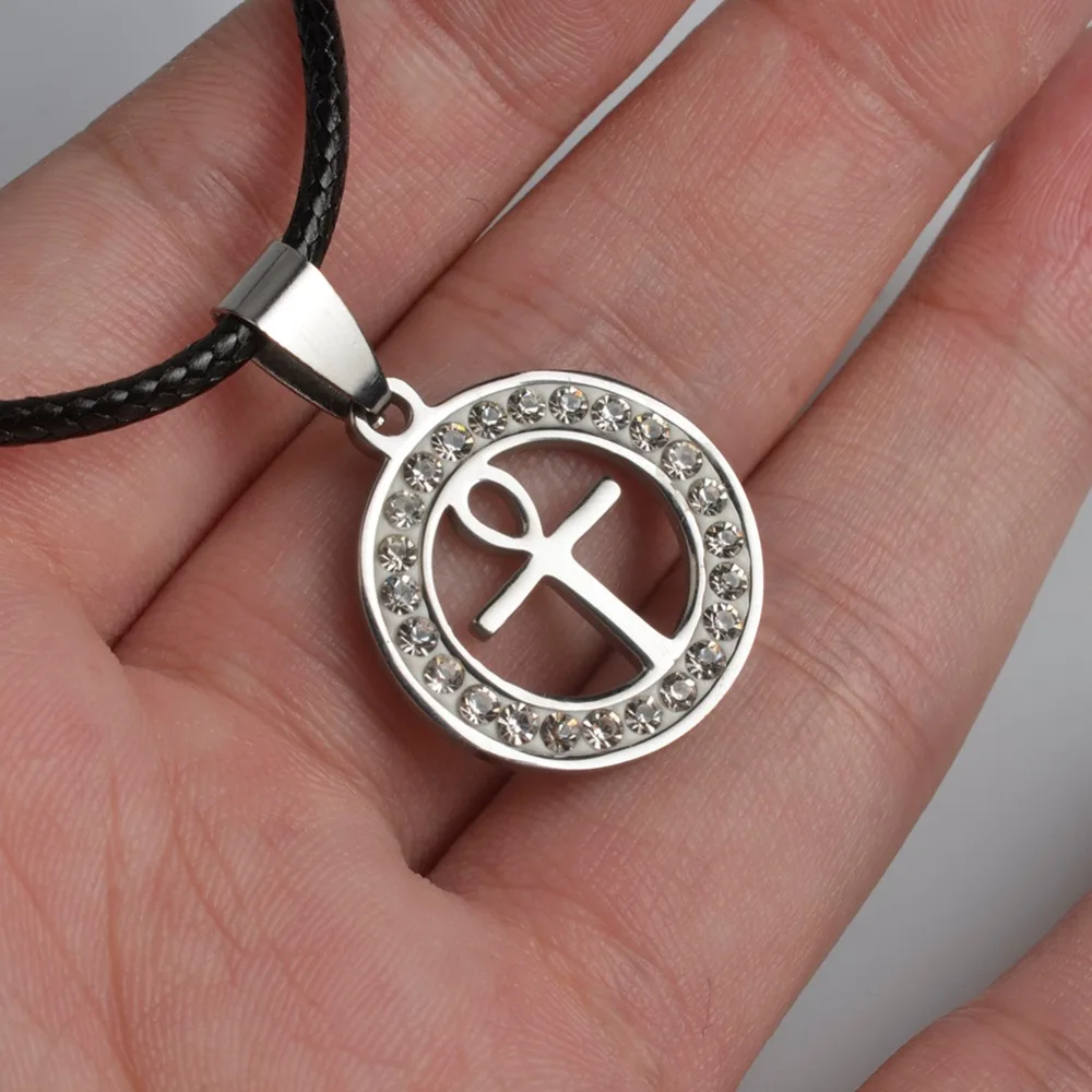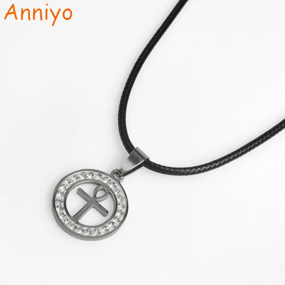 New Anniyo Egyptian Ankh Cross Rope Necklace for Women/Men Stainless Steel Pendant Jewelry Egypt Hierog