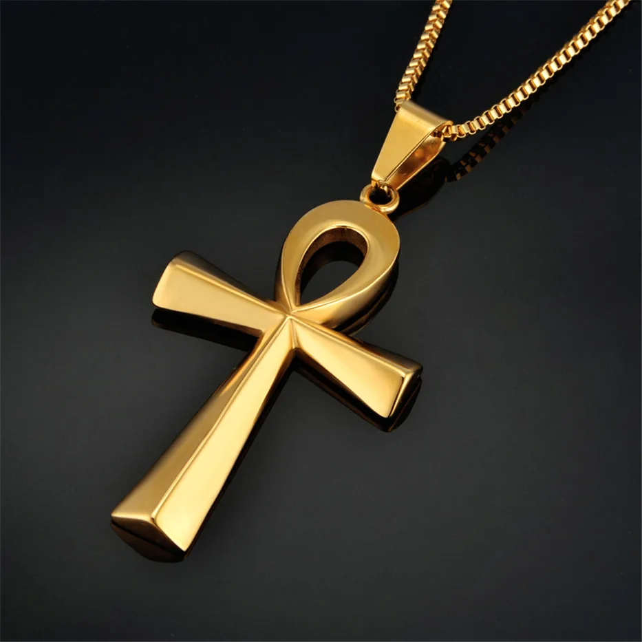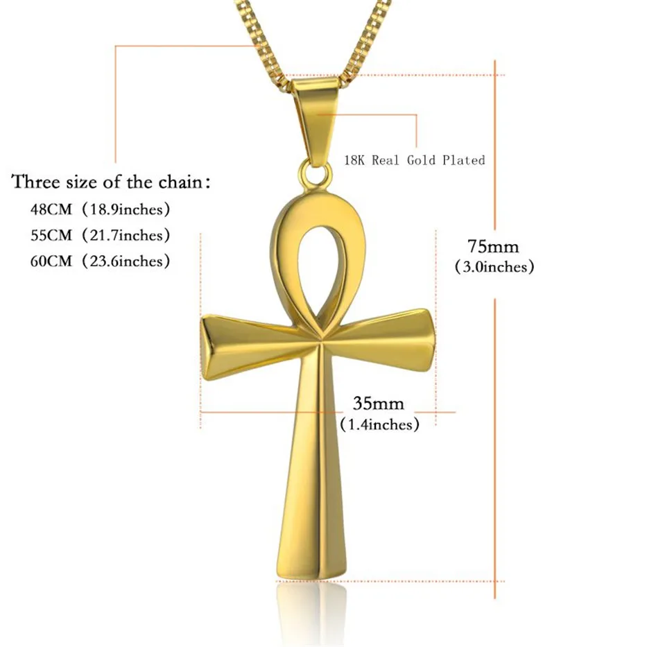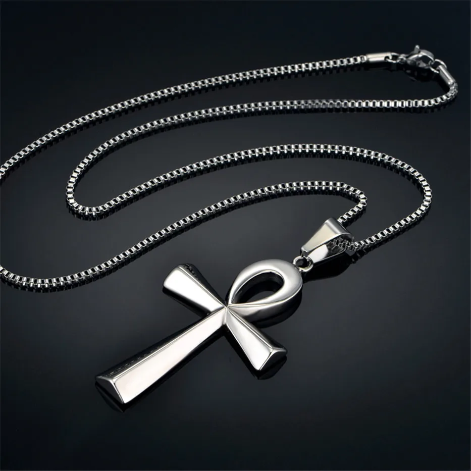 Best Egyptian Ankh Cross Charm Pendant Necklace For Woman/Men Key of Life Silver/Gold Color Stainless St