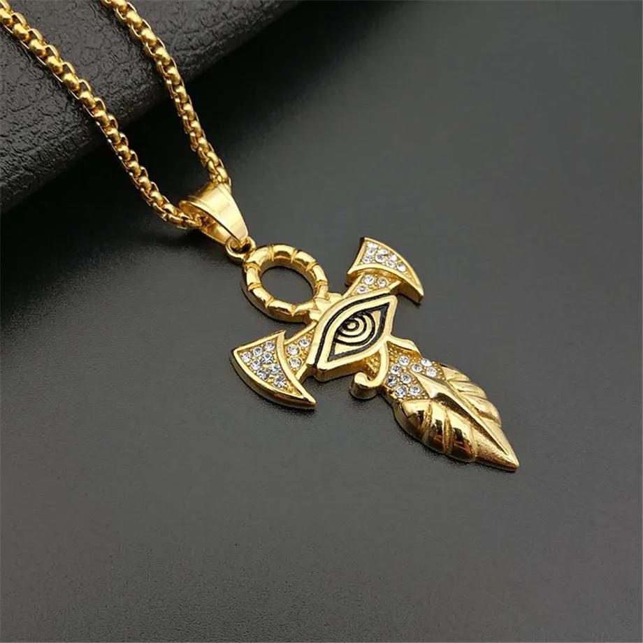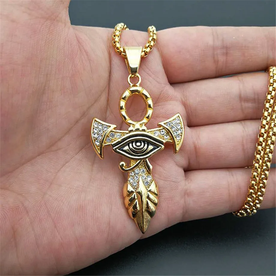 New Egyptian Ankh Cross Pendant Necklace For Women/Men Gold Color Stainless Steel Eye of Horus Necklace