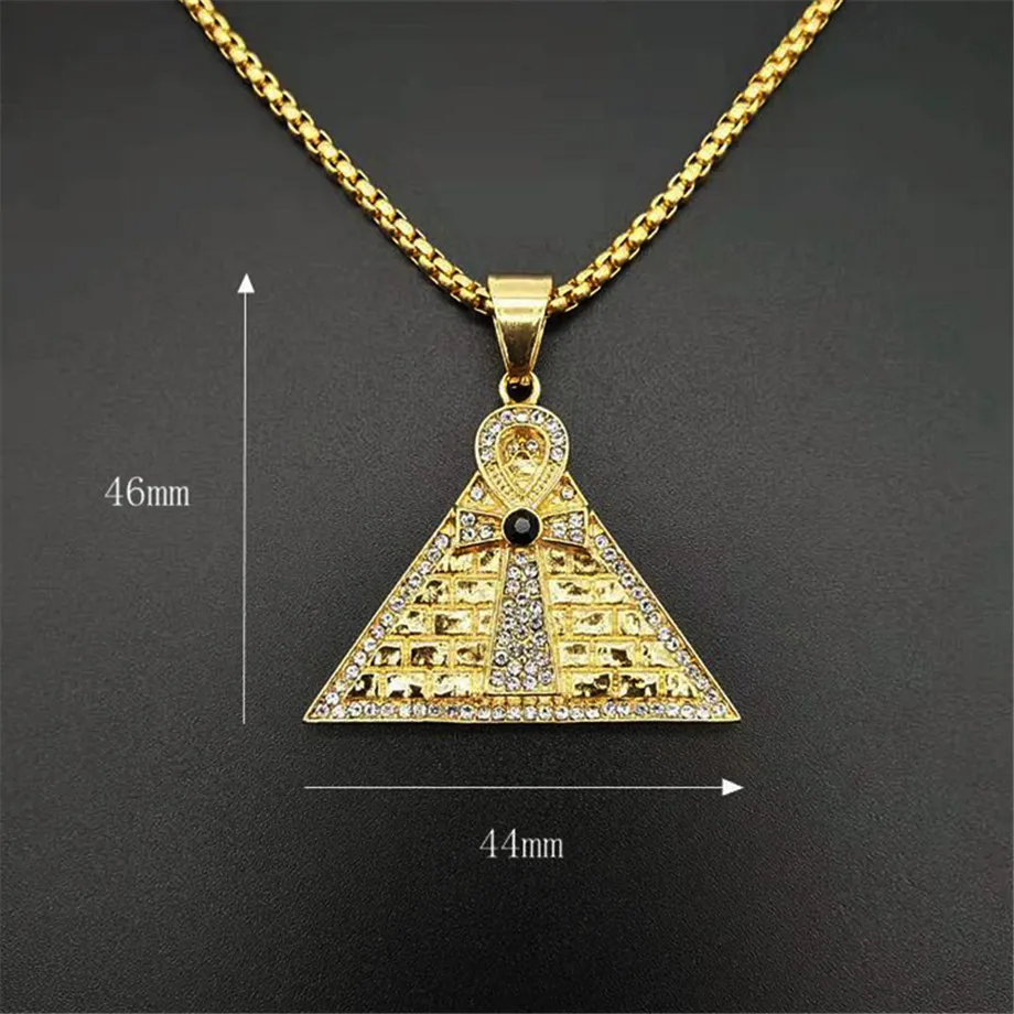 New Egyptian Pyramid Ankh Cross Pendant Necklace For Women/Men Gold Stainless Steel Iced Out Zircon Nec