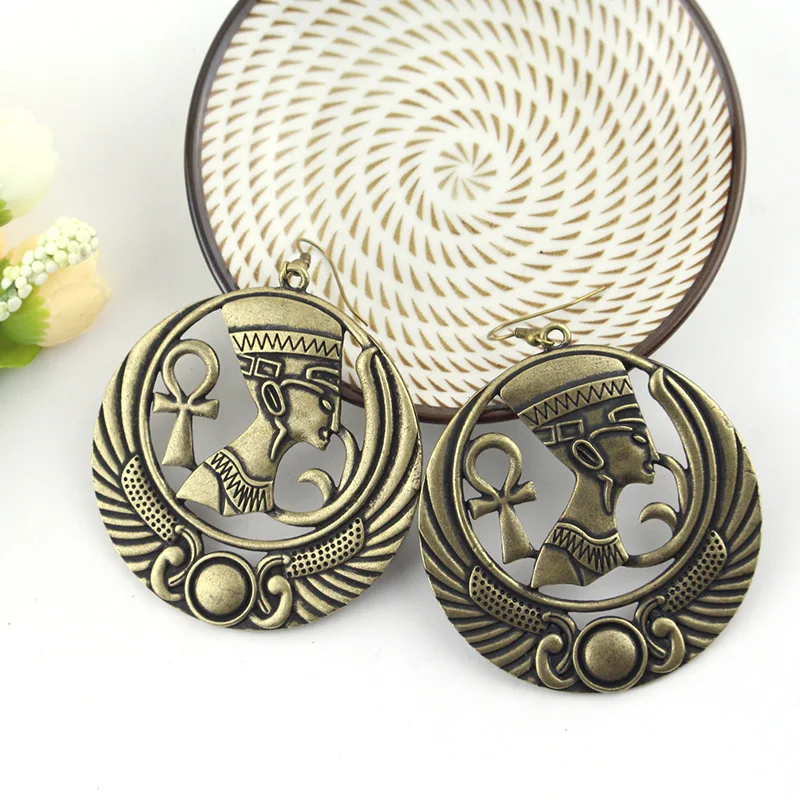 New Hot Sales Egypt Pharaoh Earrings Bronze Alloy Personilty Ankh Jewelry Hollowing Out Portraits Eardr