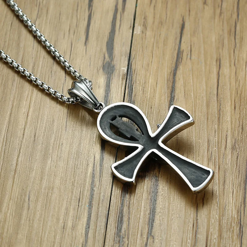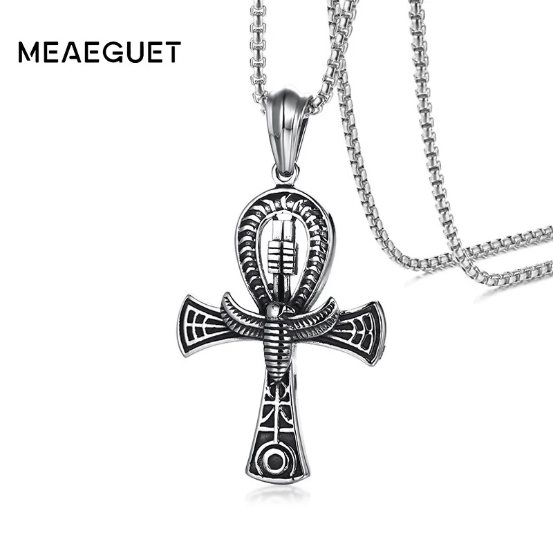 New Meaeguet Punk Street Key To Life Egypt Cross Necklaces For Men Middle Ages Stainless Steel Totem Sc