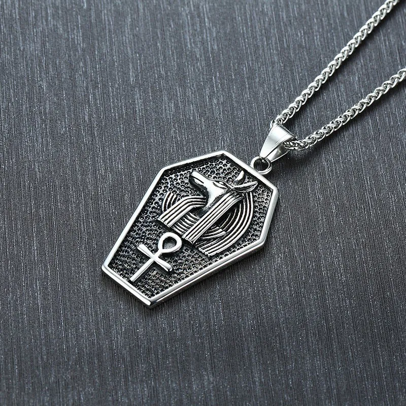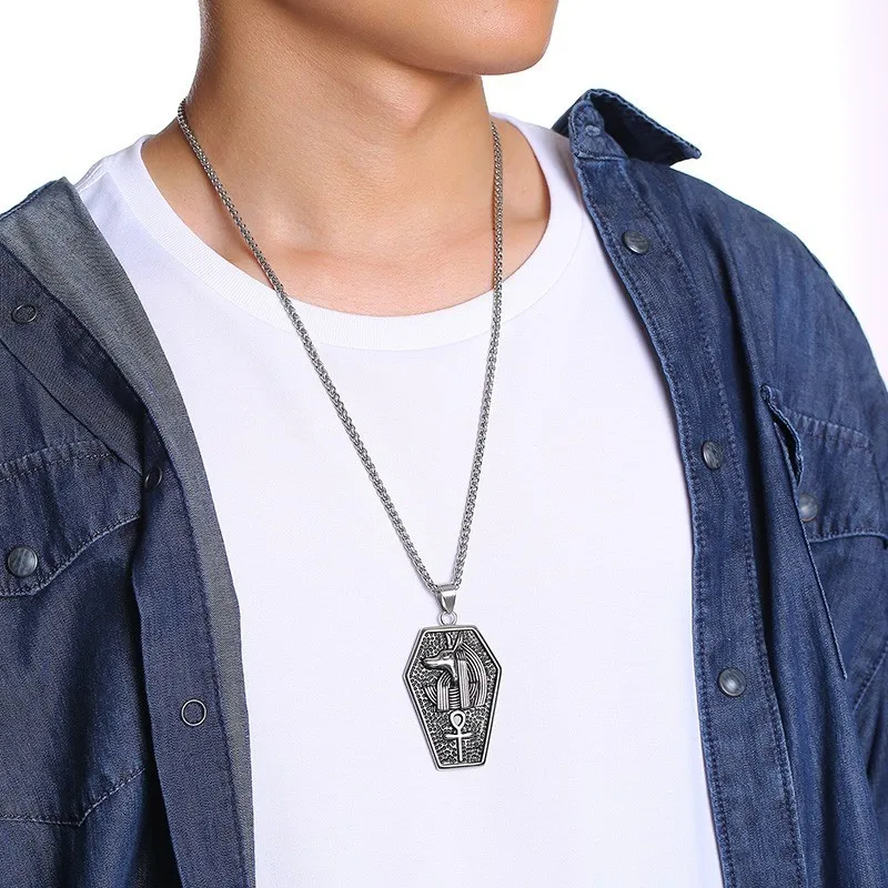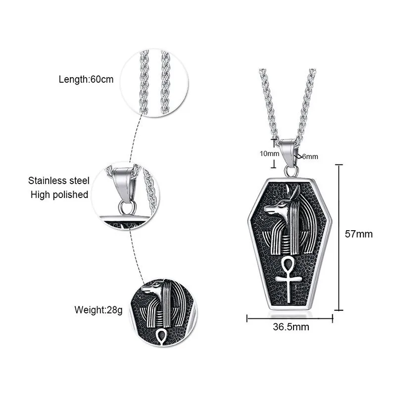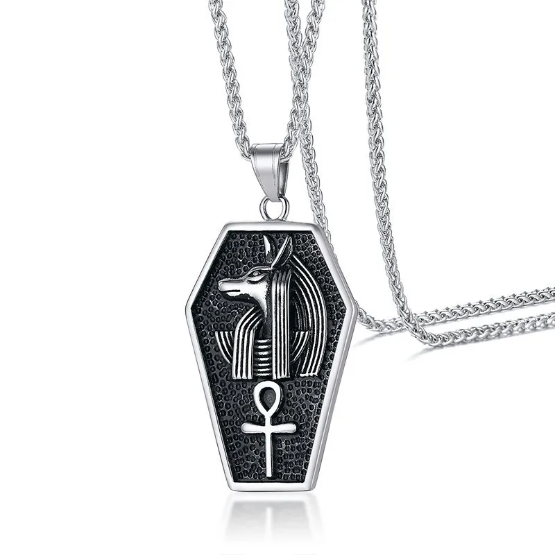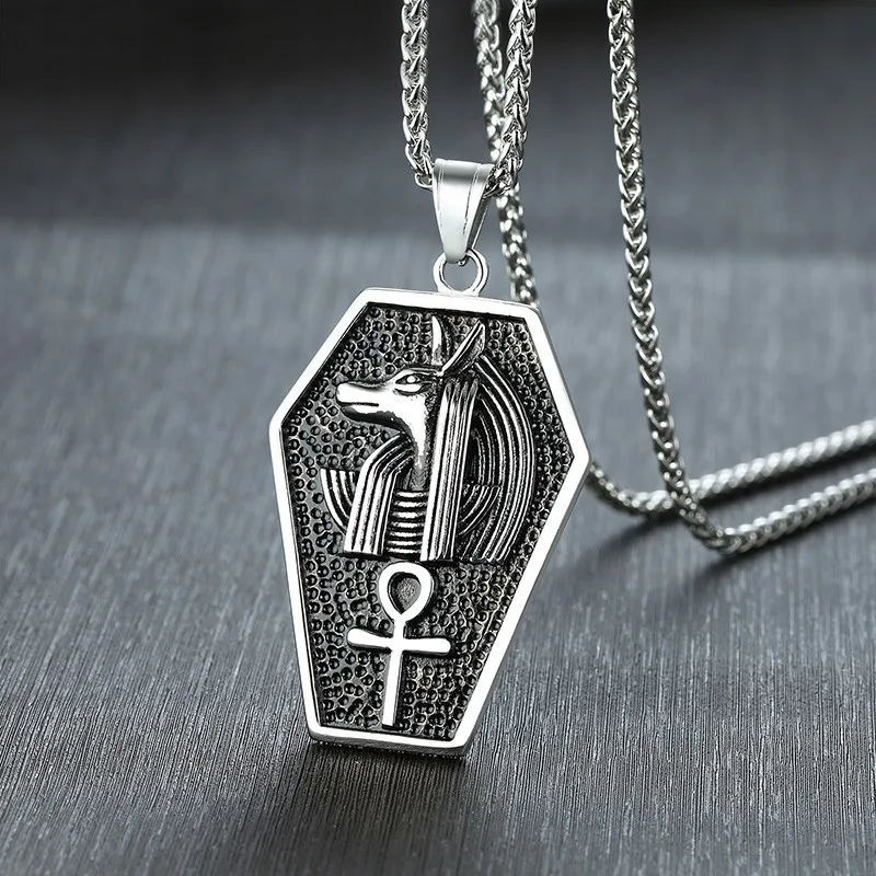 Promo Mens Anubis Sarcophagus Pendant Necklace Gothic Ankh Egypt Africa God Goth Tomb Male Punk Jewelry