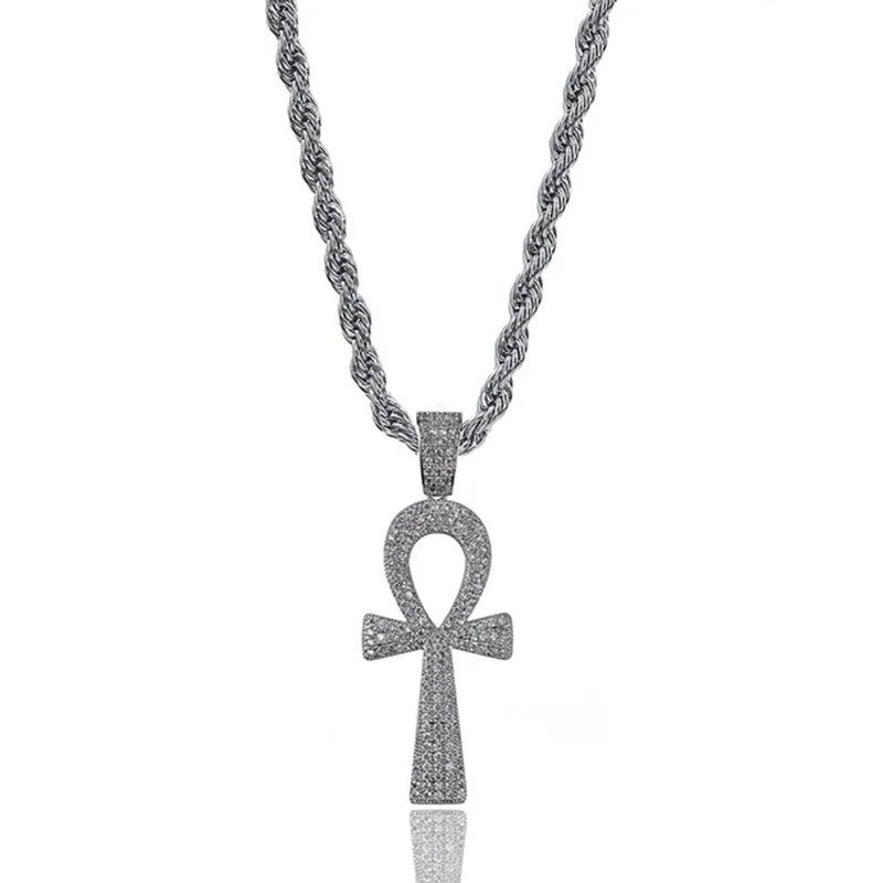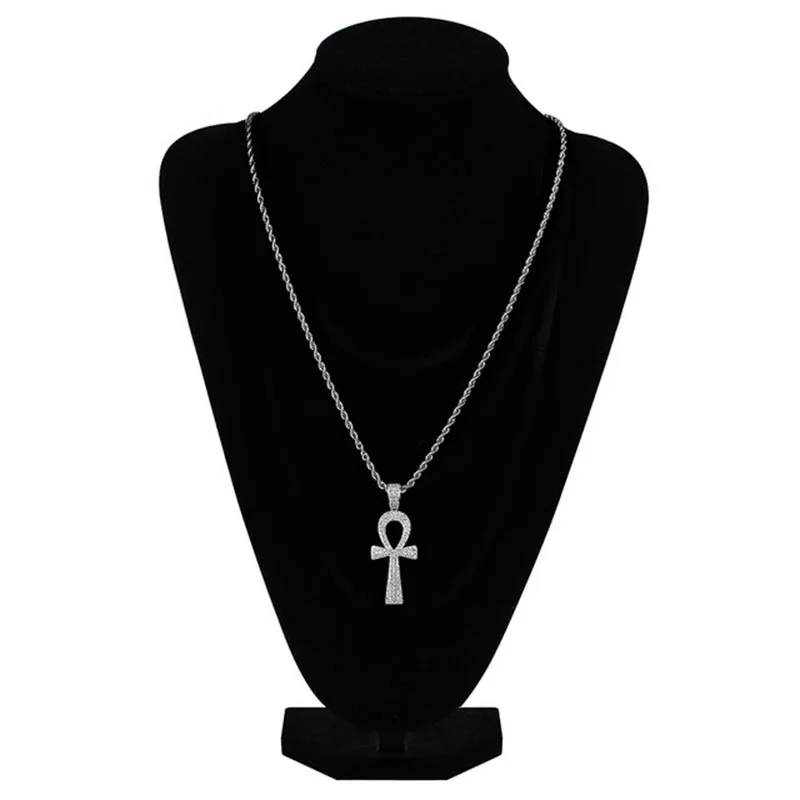 New MISSFOX Hip Hop Iced Out Ankh Necklace Egyptian Jewelry Rock Style Full Bling AAA Cubic Zirconia Eg