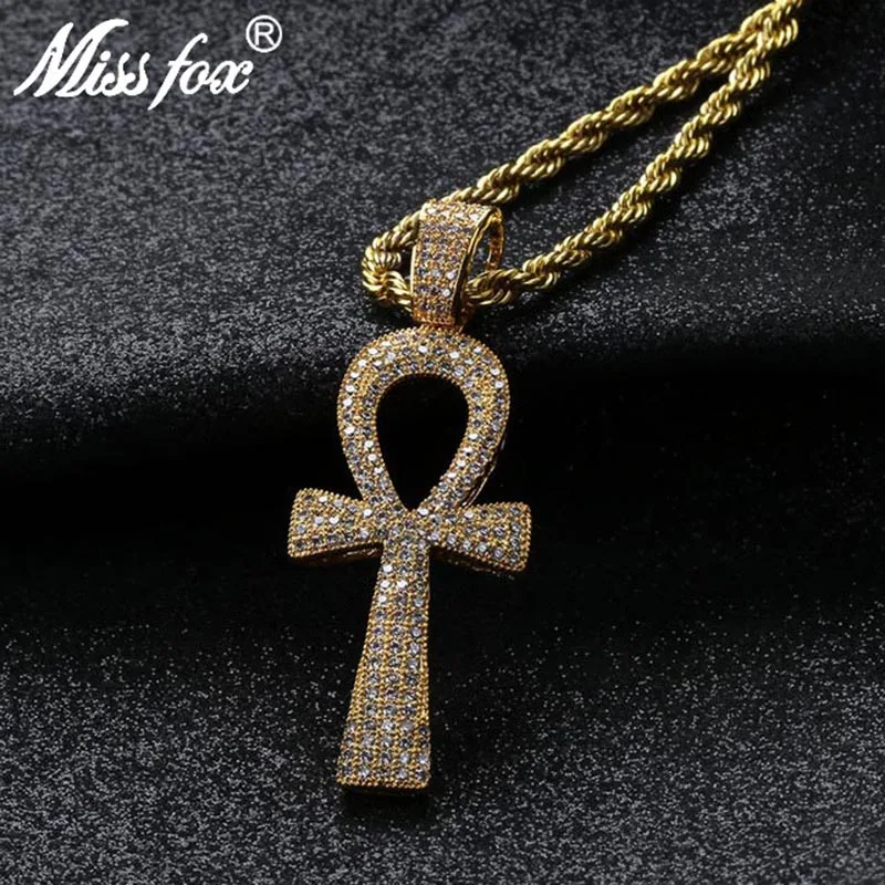 Buy MISSFOX Hip Hop Iced Out Ankh Necklace Egyptian Jewelry Rock Style Full Bling AAA Cubic Zirconia Eg