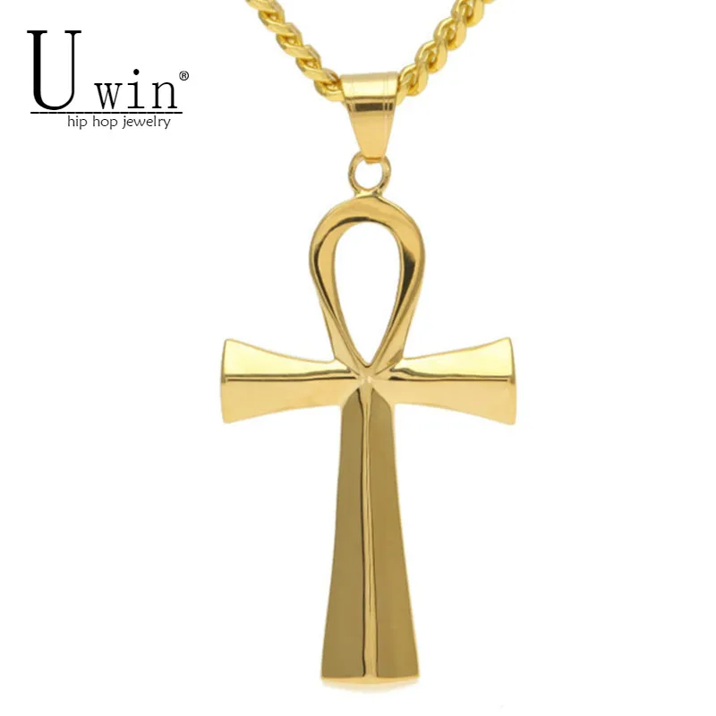 Promo UWIN Stainless Steel Ankh Necklace Egyptian Jewelry Hip Hop Pendant Iced Out Gold Key To Life Egyp