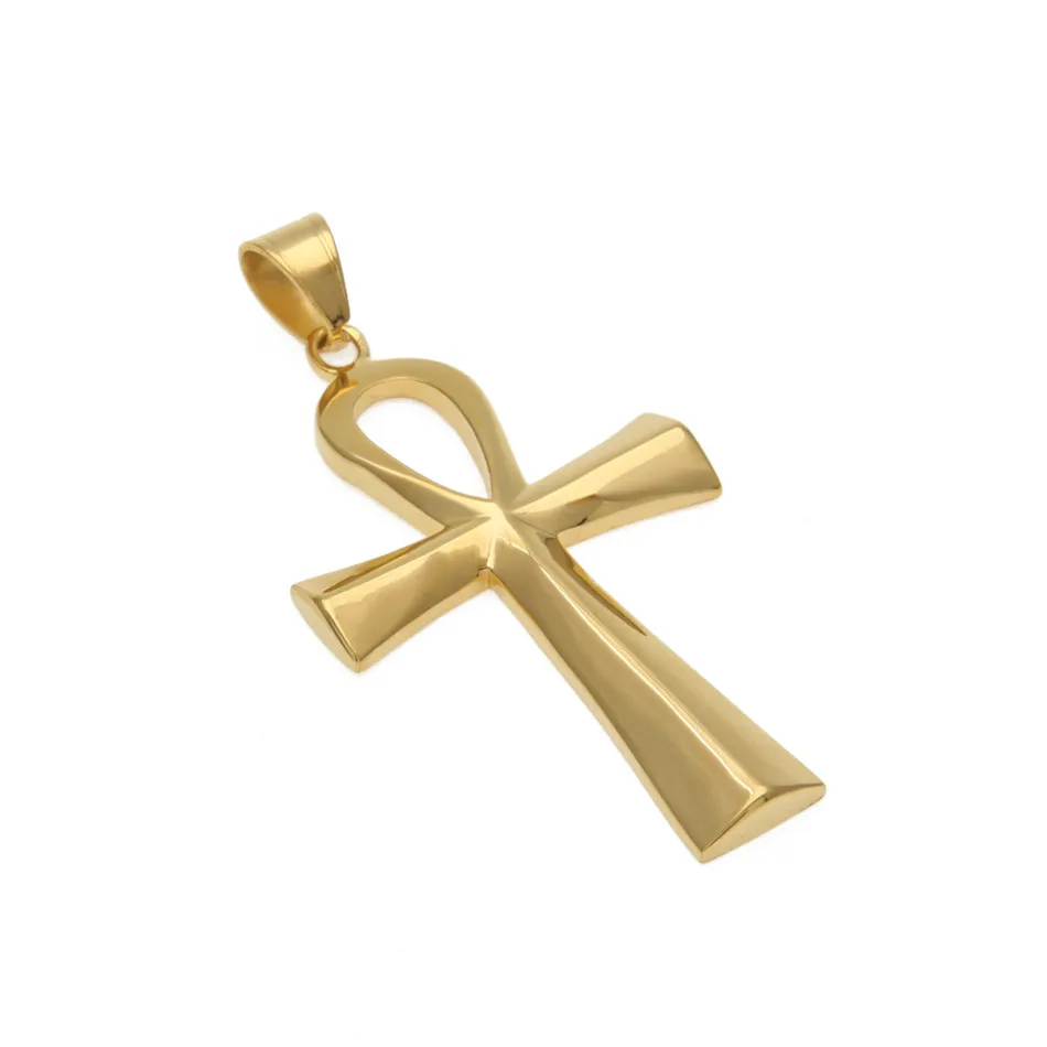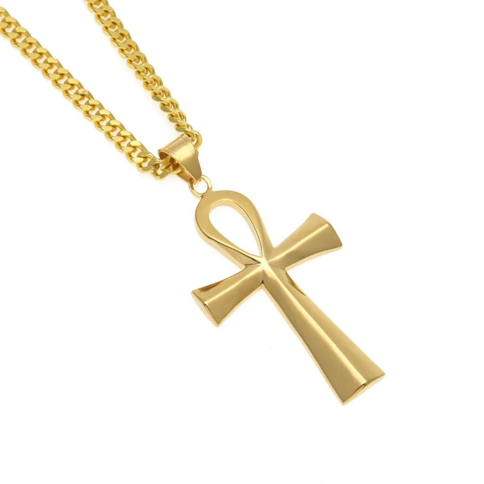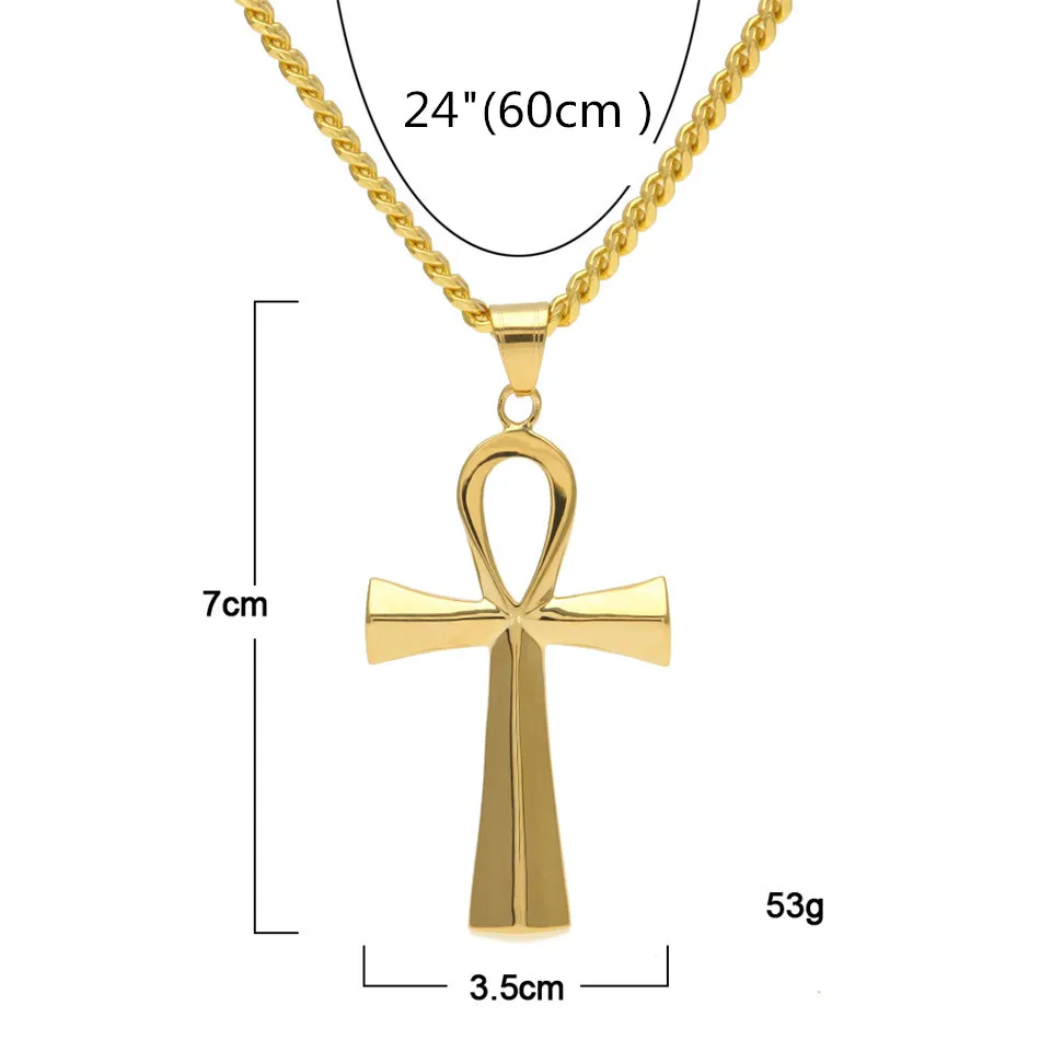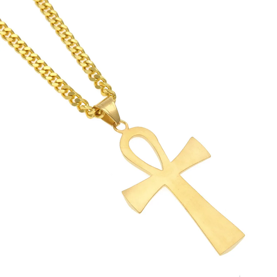 New UWIN Stainless Steel Ankh Necklace Egyptian Jewelry Hip Hop Pendant Iced Out Gold Key To Life Egyp