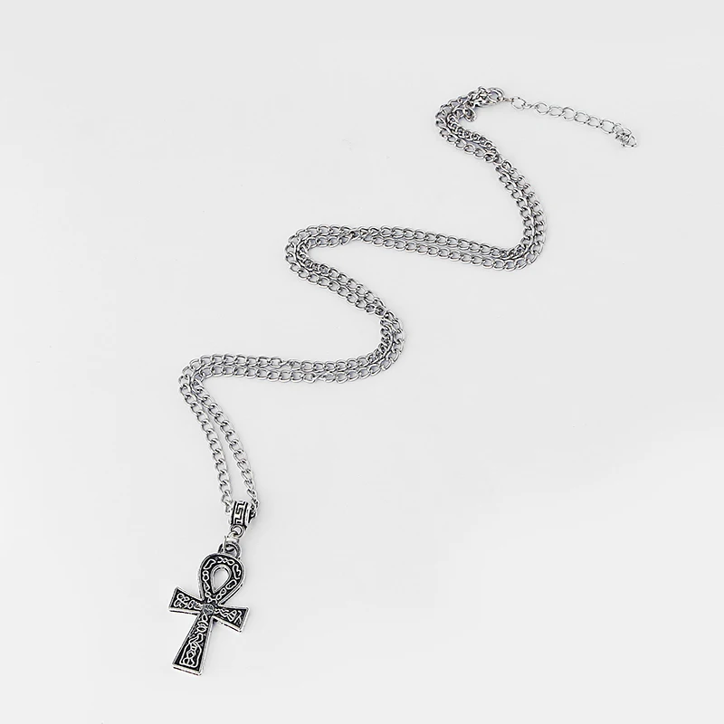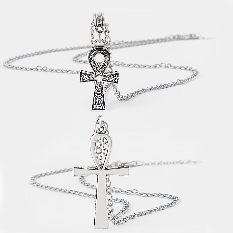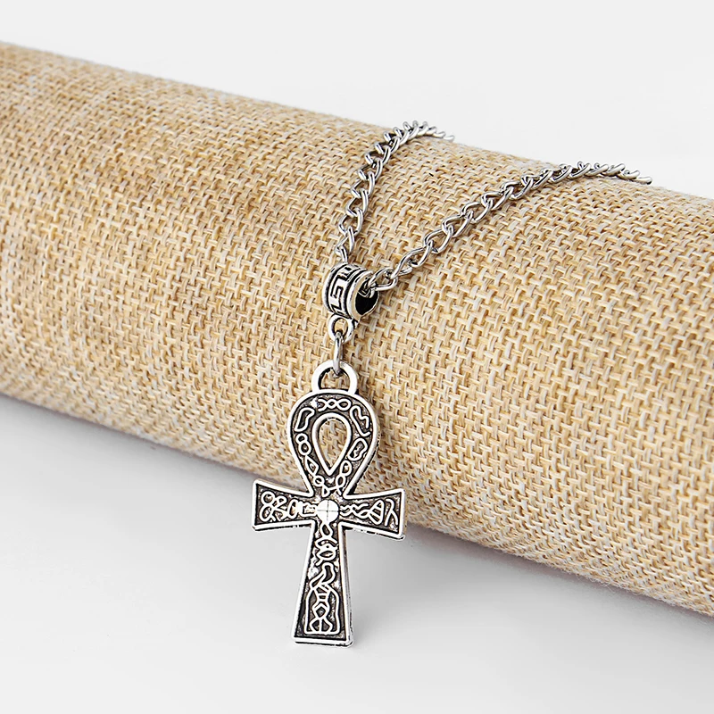 Promo 1pcs Antique Silver Egyptian Ankh Cross Pendant Necklace Metal Chain Egypt Cross Charms Vintage DIY