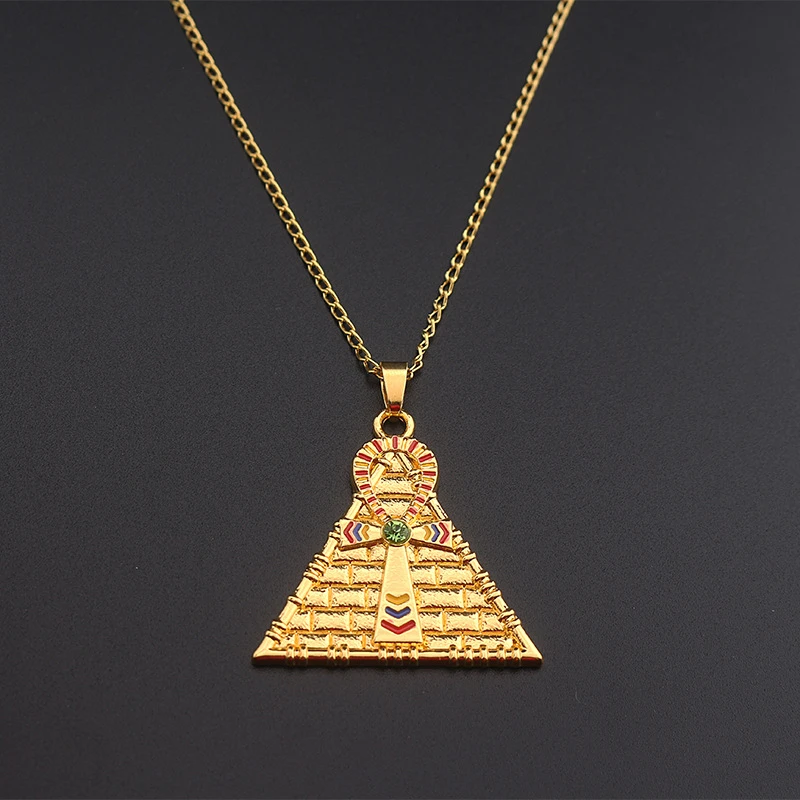 Promo Anime Jewelry Egyptian Ankh Cross Necklaces For Men Women Triangle Yugioh Egypt Pyramid Yu-gi-oh Pe