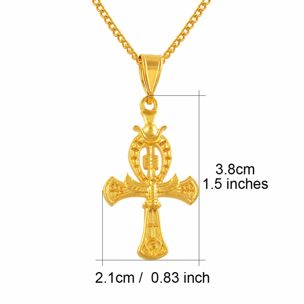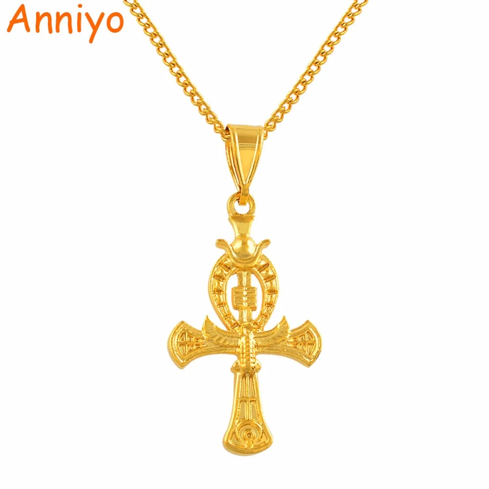 Promo Anniyo Ankh Cross Pendant Necklaces Gold Color Ancient Symbol of Egyptian Amulets African Jewelry E