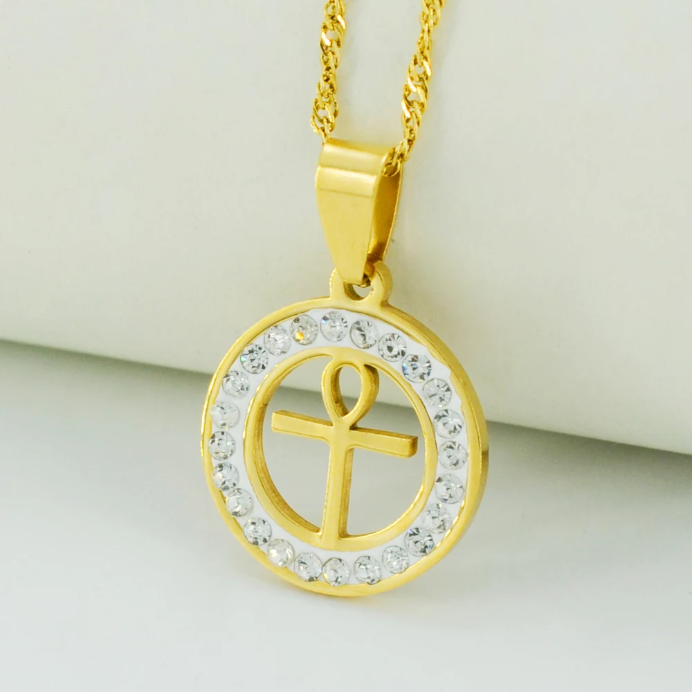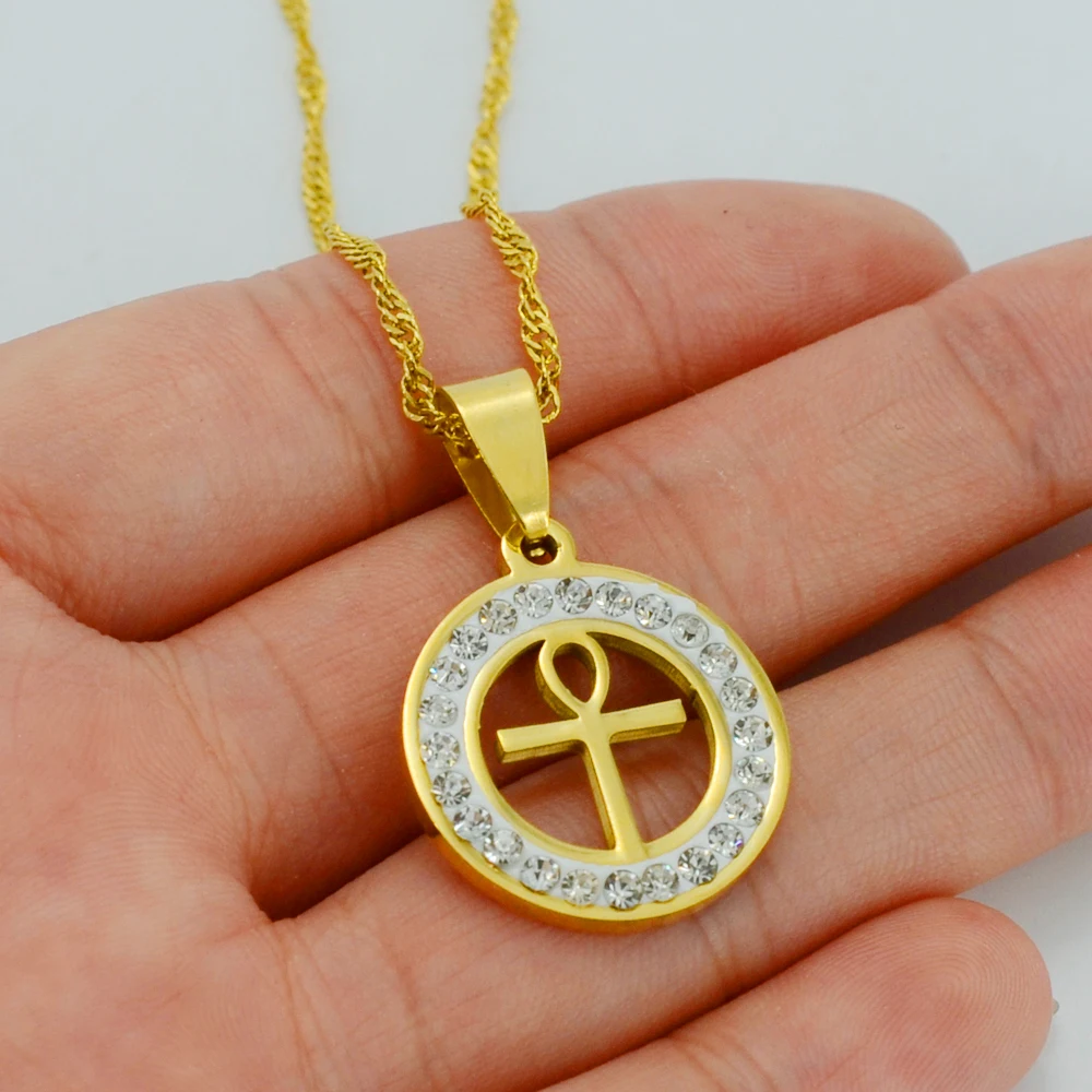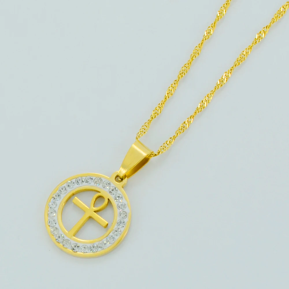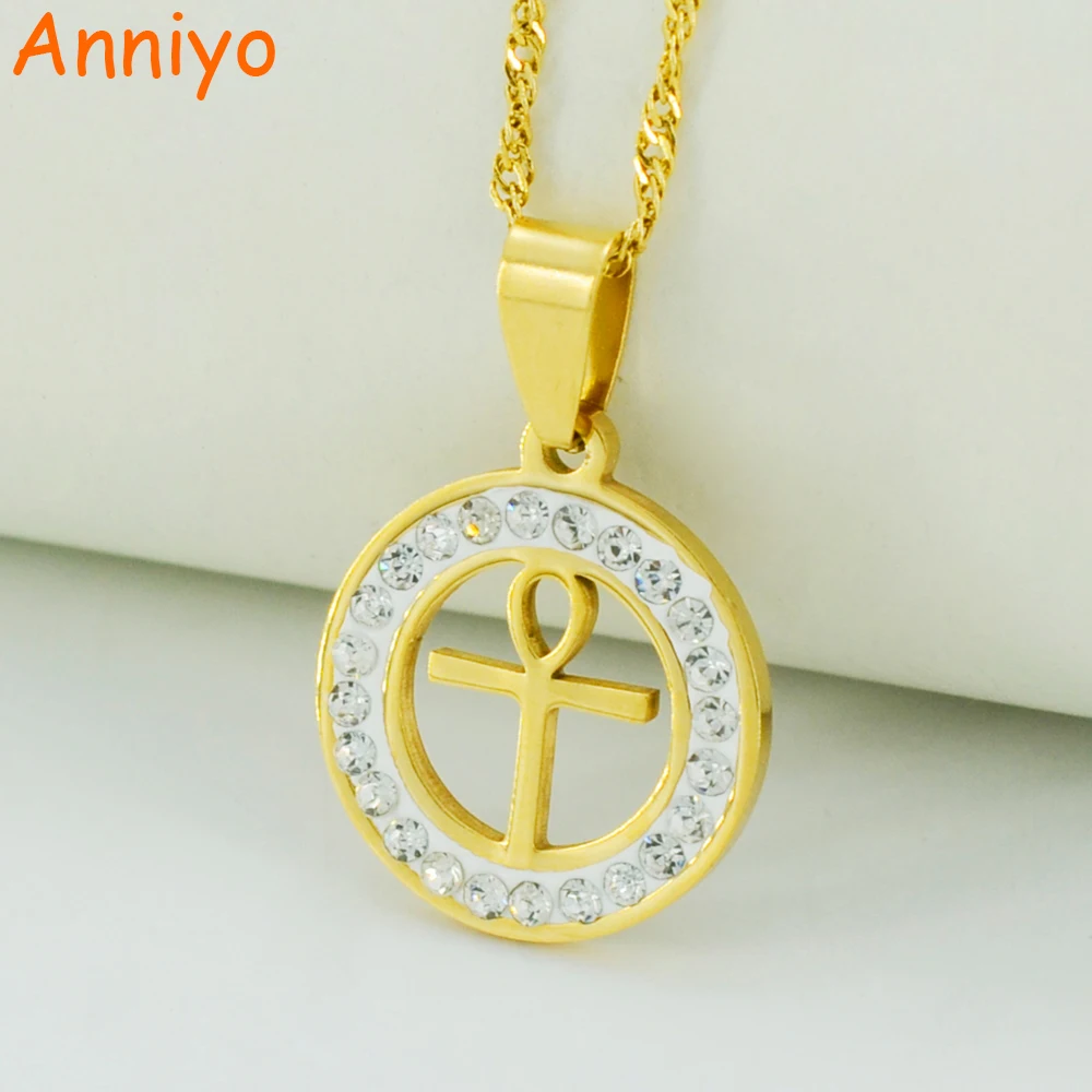 Promo Anniyo Egyptian Ankh Cross Necklace for WomanGold Color Pendant Jewelry Girls Egypt HieroglyphsCrux
