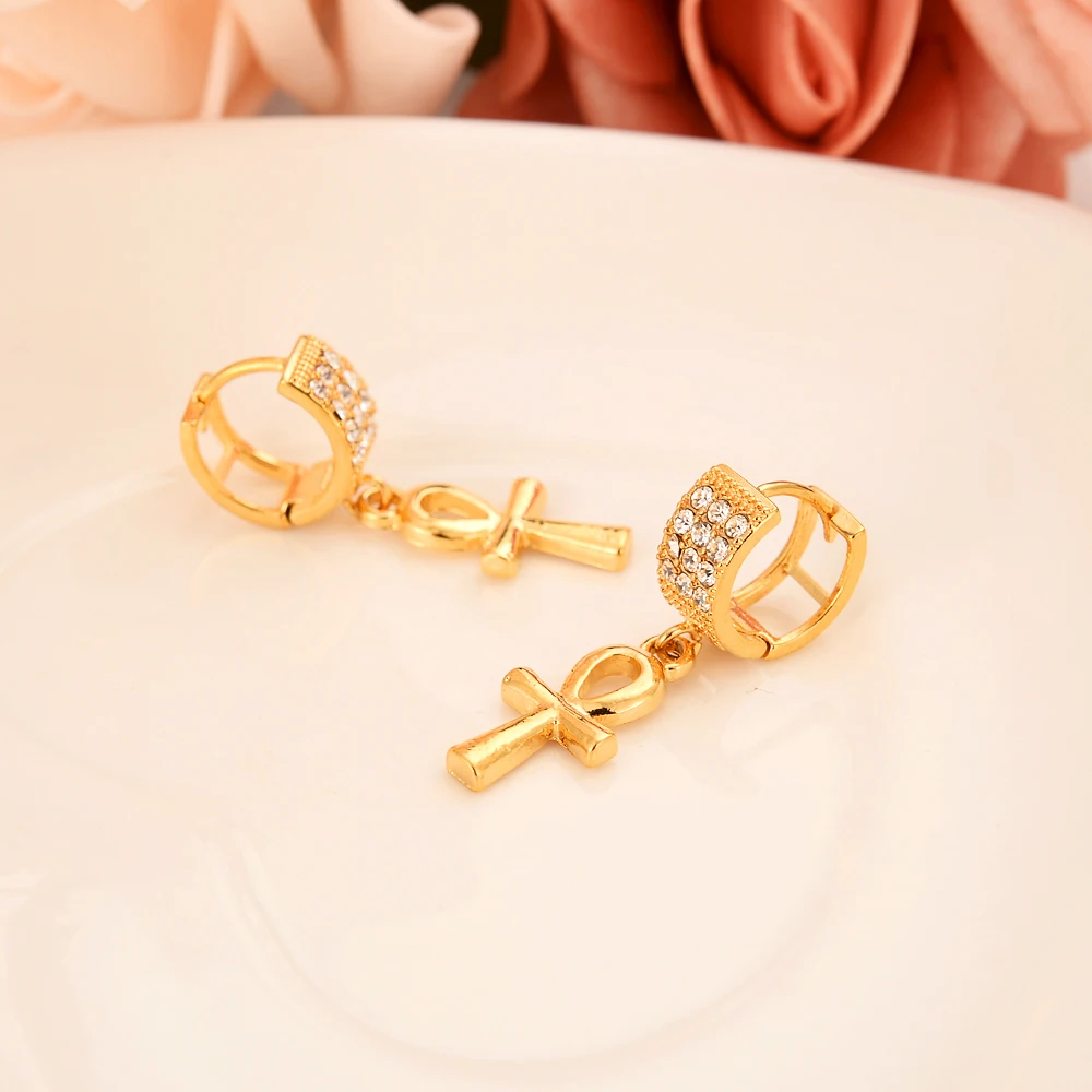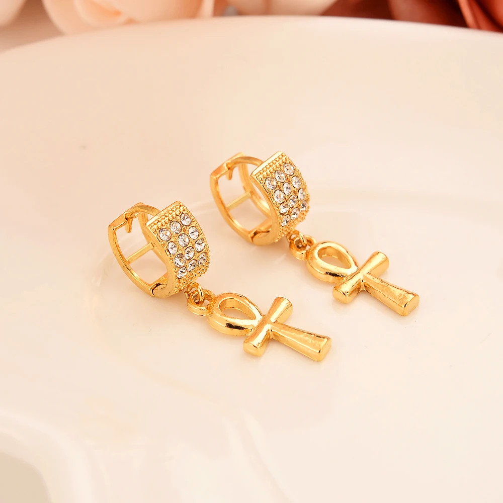 Promo Classic Ankh Earrings Gold Color Egyptian Cross Jewelry Women Egypt Hieroglyphs Crux Ansata wedding