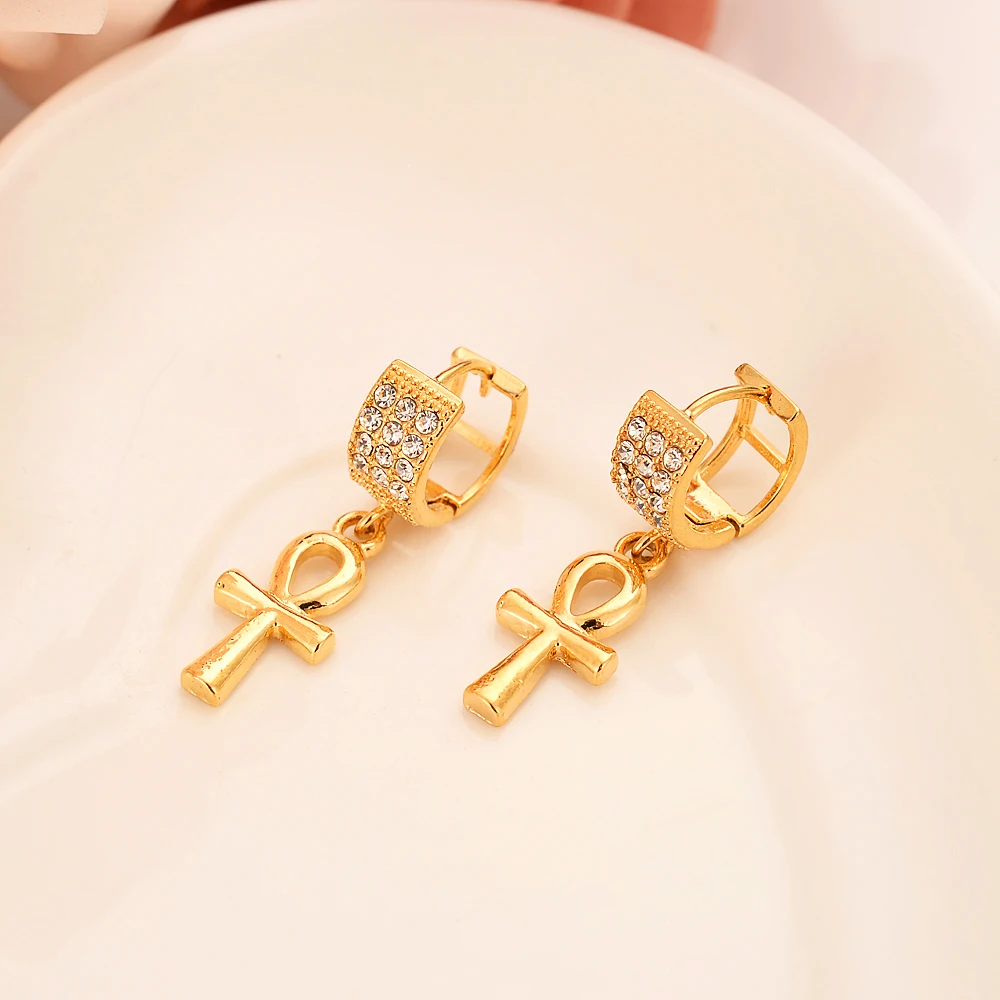 New Classic Ankh Earrings Gold Color Egyptian Cross Jewelry Women Egypt Hieroglyphs Crux Ansata wedding