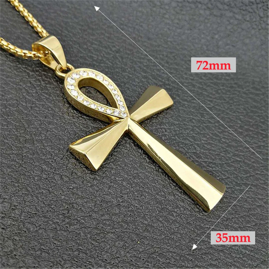 New Egypt Iced Out Bling Ankh Cross Pendant Necklace For Women And Men Key of Life Stainless Steel Egyp