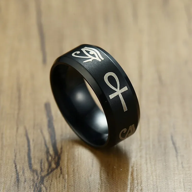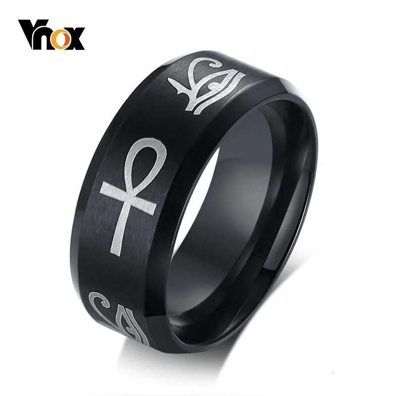 Promo Vnox Stainless Steel Egypt Eye of Horus Ankh Cross Rings for Men US Size 7-12