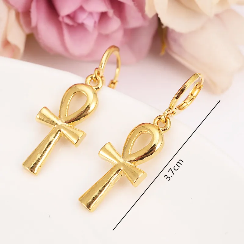 Best Gold Egyptian Ankh Cross Jewelry Set Women Charms Jewelry Girls Egypt Hieroglyphs Crux Ansata penda