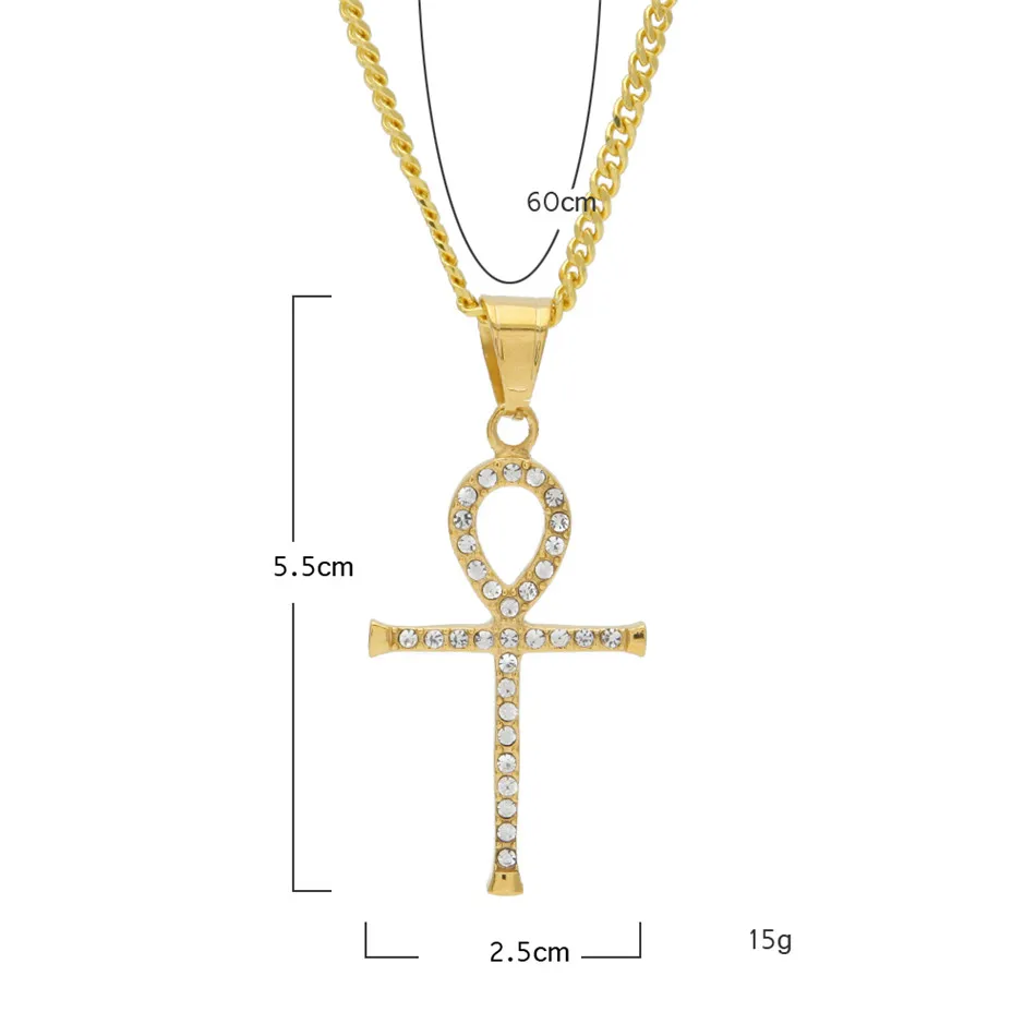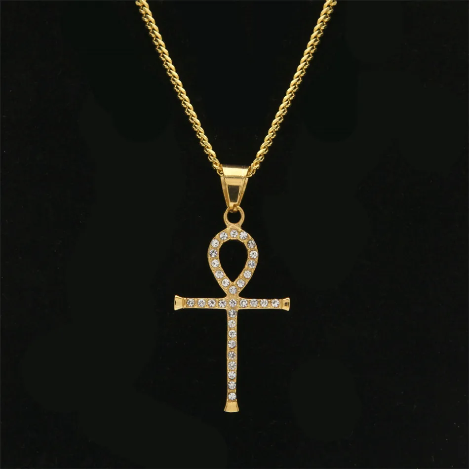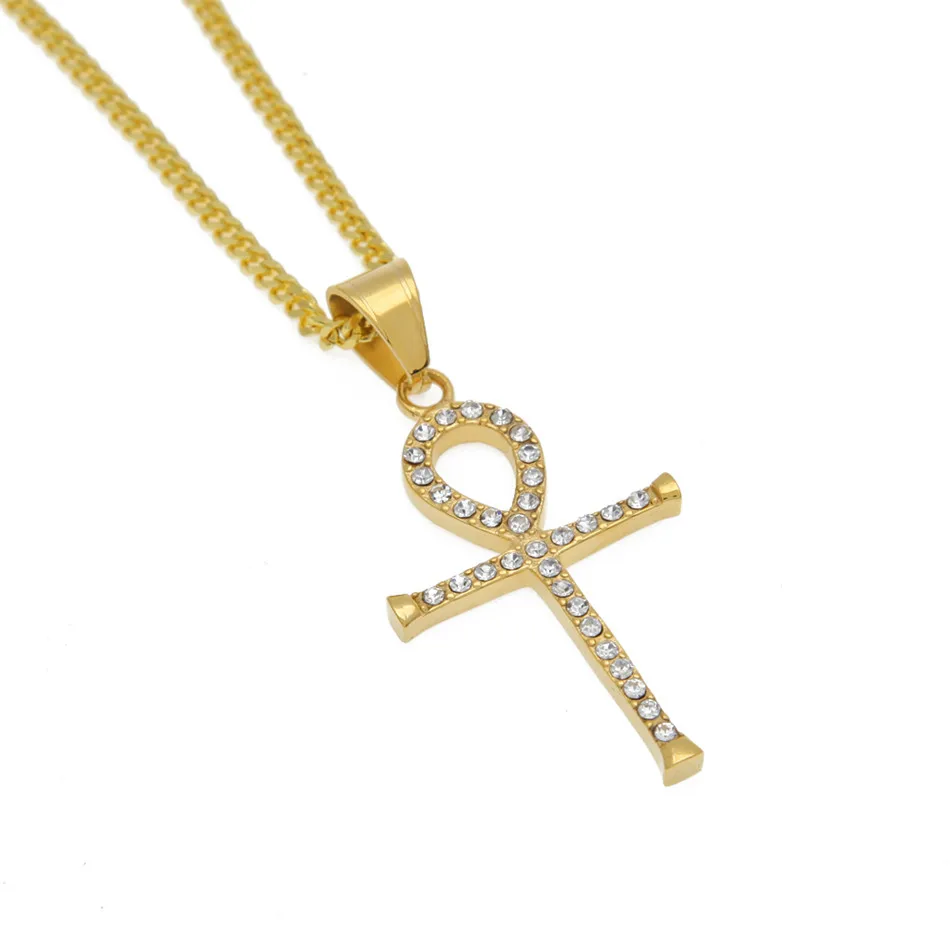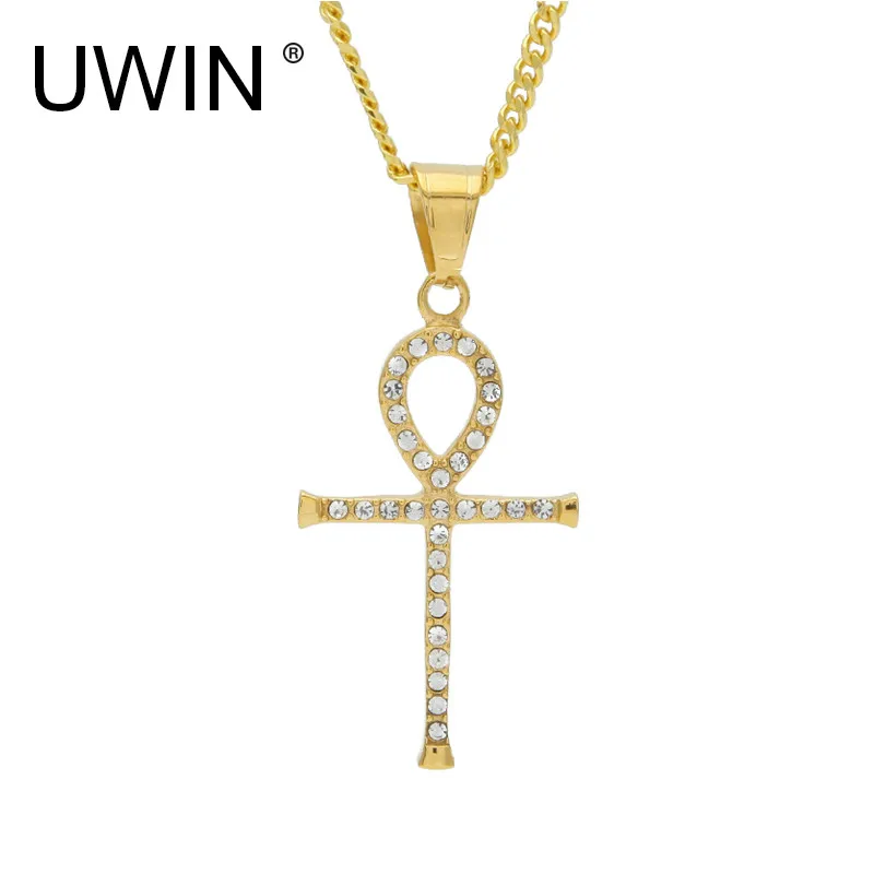 Best UWIN Stainless Steel Ankh Necklace Egyptian Jewelry Hip Hop Pendant Bling Rhinestone Crystal Key To