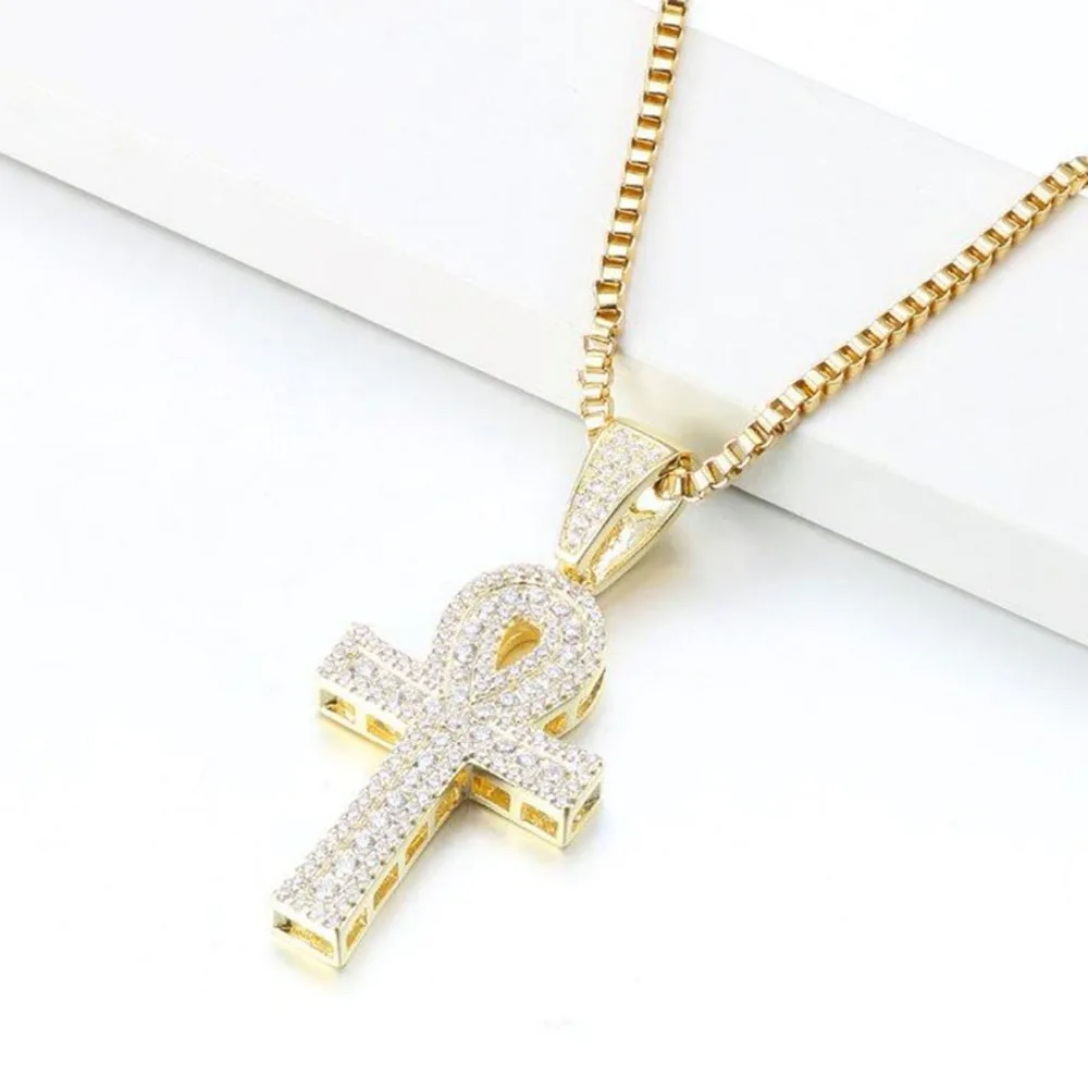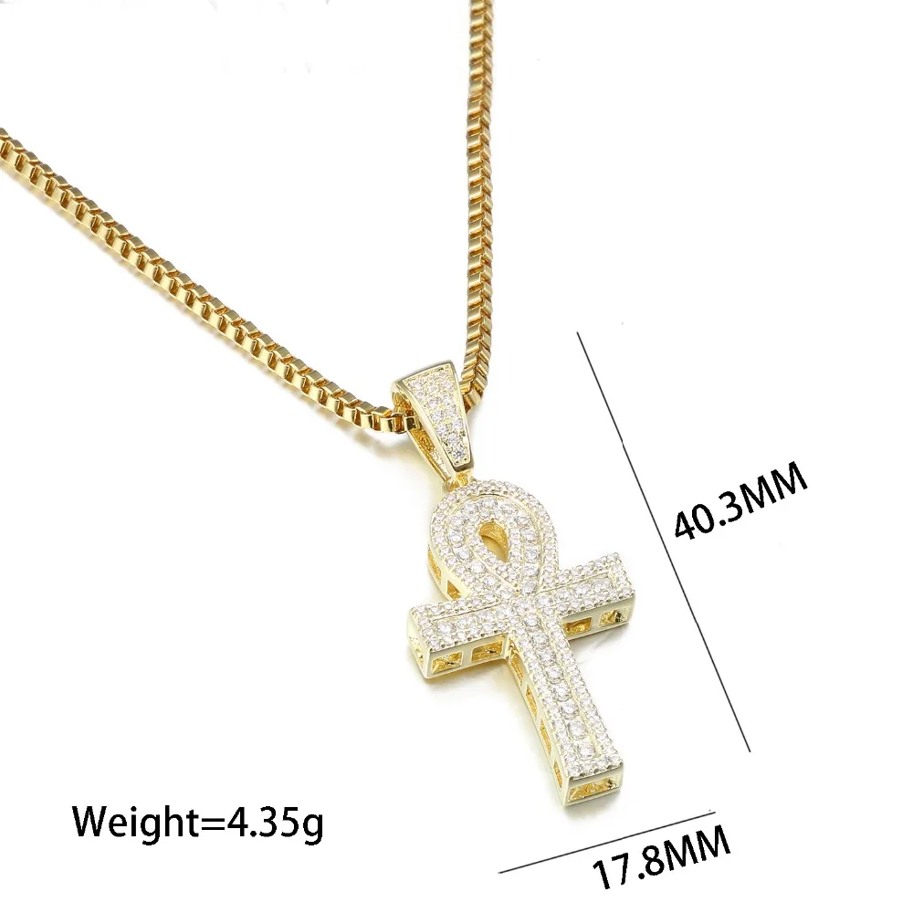 Promo VANAXIN Ankh Necklace Egyptian Jewelry Hip Hop Style Iced Out Cubic Zircons Bling Rhinestone Egypt