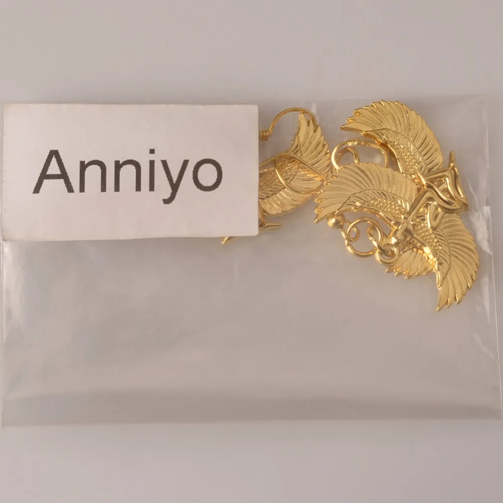 New Anniyo Fab Egyptian Goddess Necklace Earrings sets Gold Color Wing Necklace Ankh Bib Wicca Pagan Je