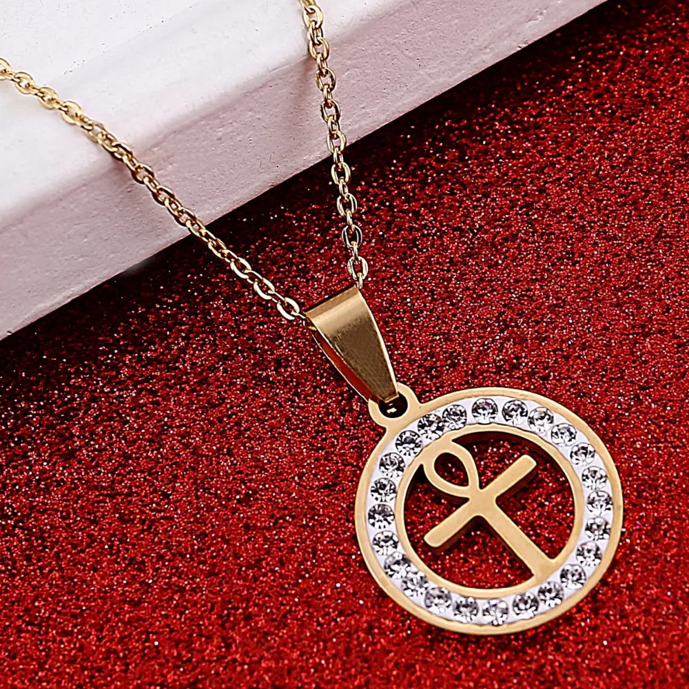 New Egyptian Ankh Cross Necklace For Woman Gold Color Pendant Jewelry Girls Egypt Hieroglyphs Crux Ansa