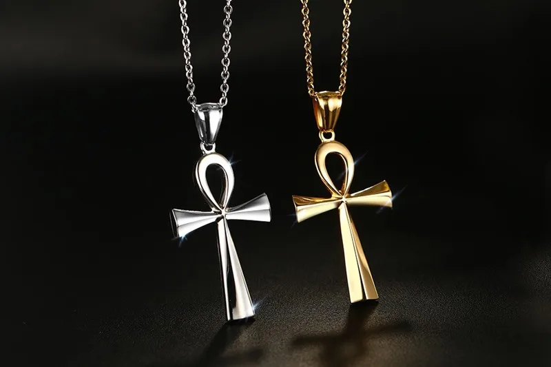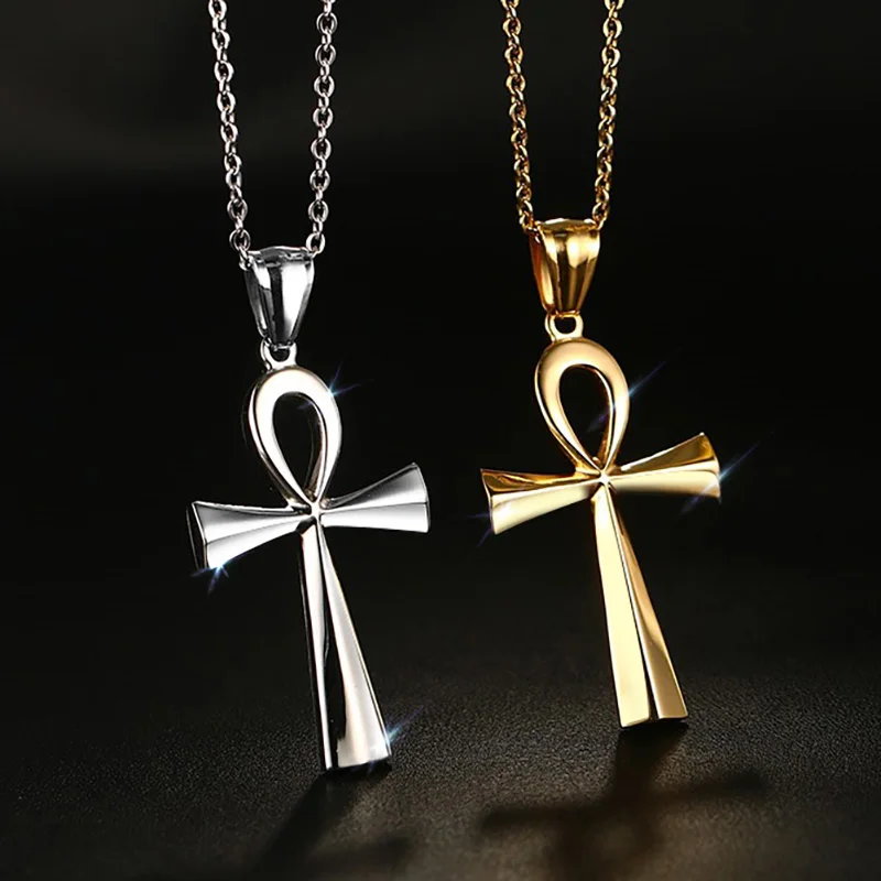 Promo Mystic Egyptian Ankh Cross Charm Pendant Necklace for Woman Silver Gold Tone Stainless Steel Egypt