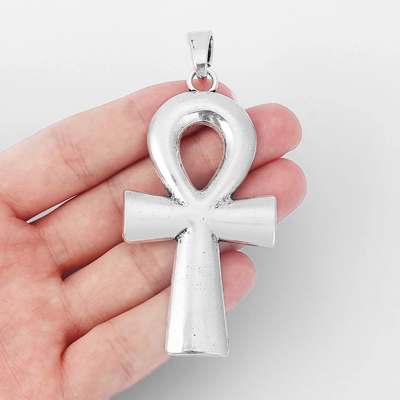 New 2pcs Antique Silver Large Egypt Ankh Cross Necklace Pendant For Necklace Jewelry Making Findings Ma