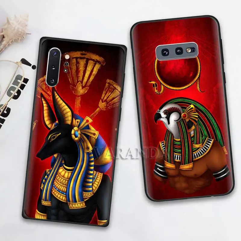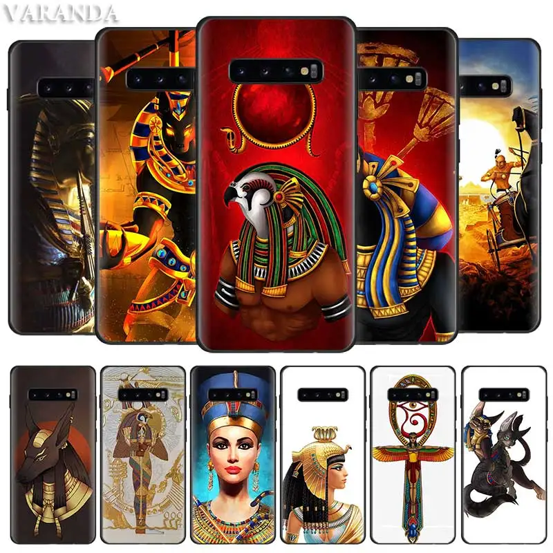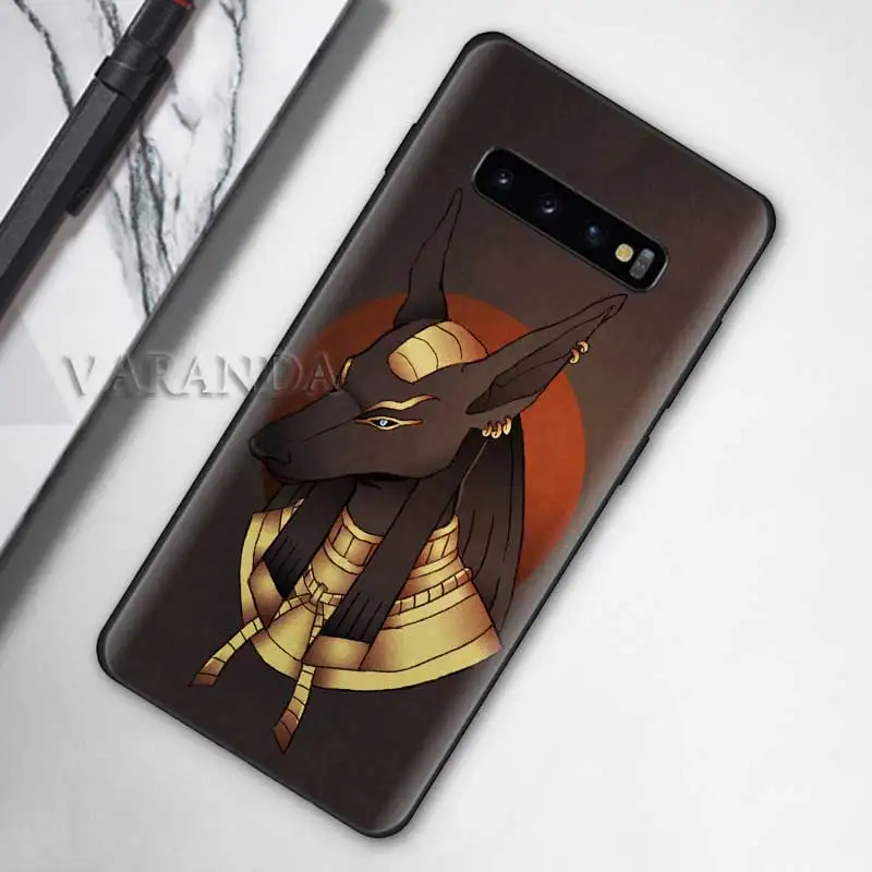 New Egypt Nefertiti Anubis Ankh Case for Samsung Note 10 8 9 S10 5G S10e S9 S8 S7 Plus S7Edge Black Sil