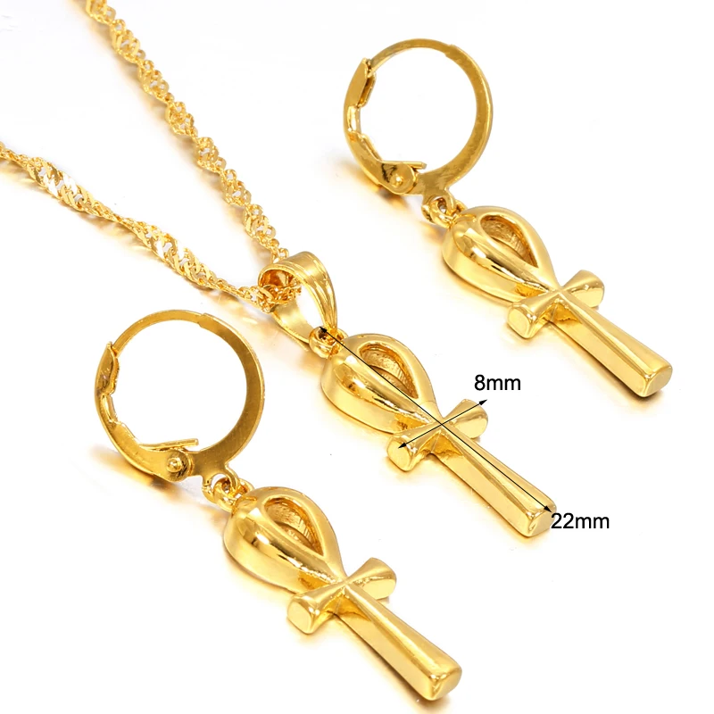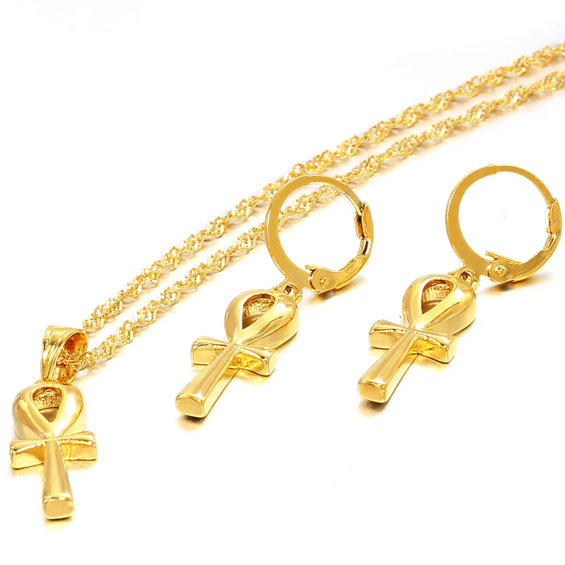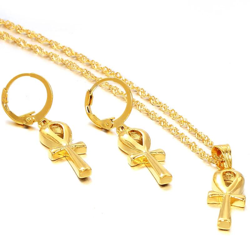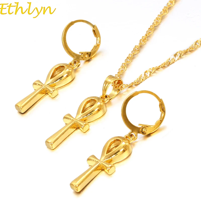 New Ethlyn Jewelry Classic Ankh Pendant Chain Earrings Gold Color Egyptian Cross Jewelry Women Egypt Hi