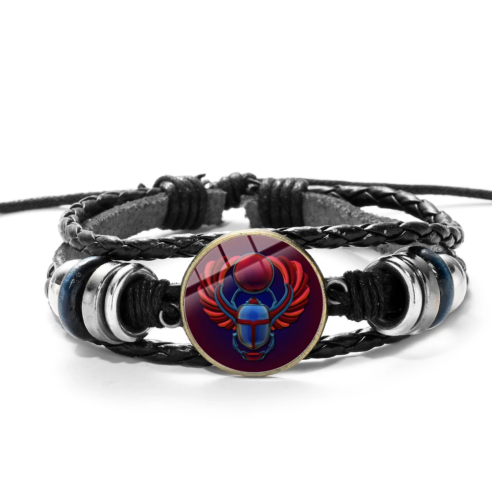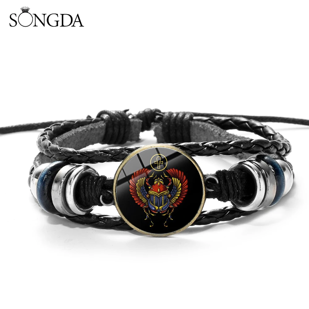 New SONGDA Egyptian Ankh Cross Scarab Bracelet Ancient Egypt Beetle Symbol of Strength Woven Leather Wr