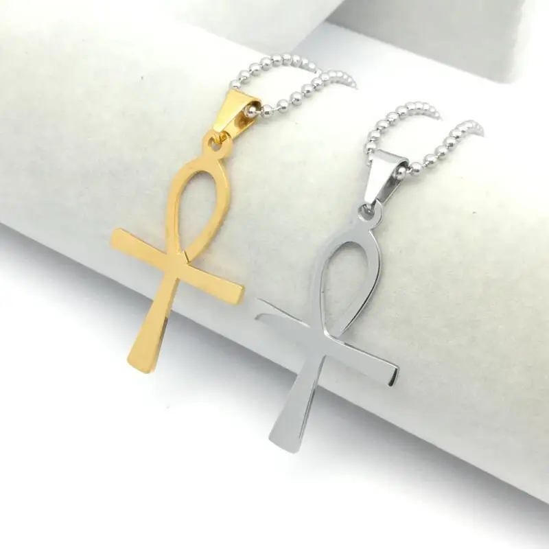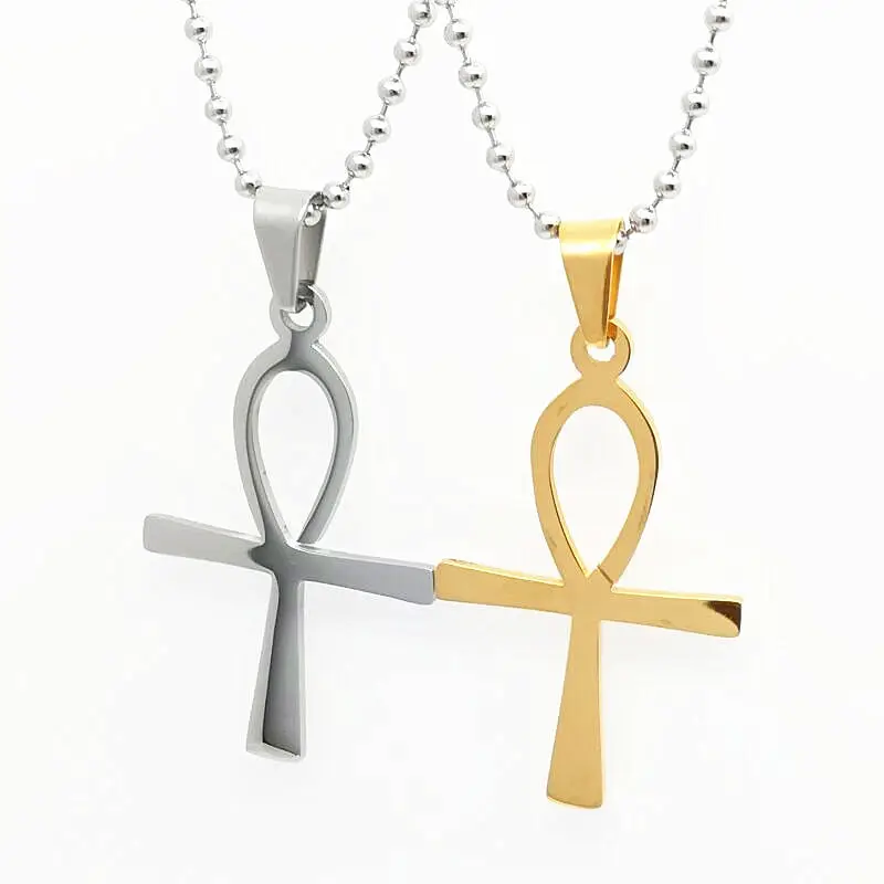 Promo Egyptian Ankh Cross Pendant Necklace Chain WomanGold Color Charms Jewelry Girls Egypt Hieroglyphs