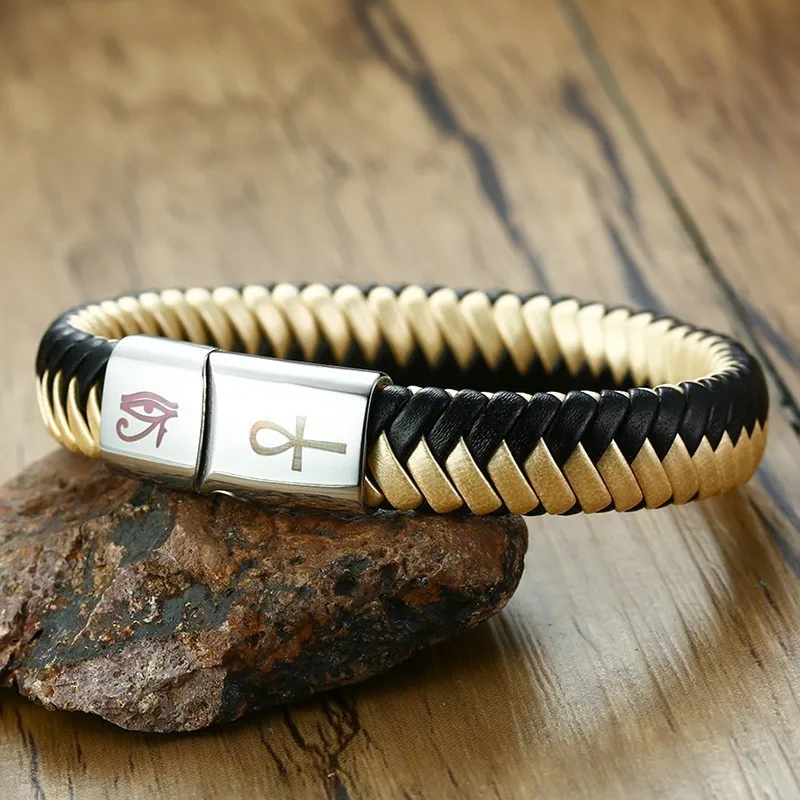 If you search this product, i propose you to take this excelent and best [A. R. M. Y]. I hope Engraving Braid Leather Bracelet With Stainless Steel Wristbands Egypt Eye Horus Ankh Cross Contras suitable for your needs.