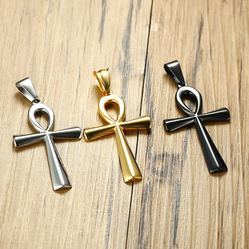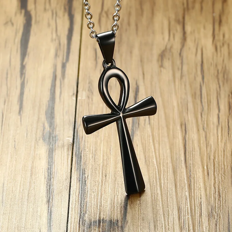 New Mystic Egyptian Ankh Cross Charm Pendant Necklace for Men/ Woman Tone Stainless Steel Egypt Jewelry